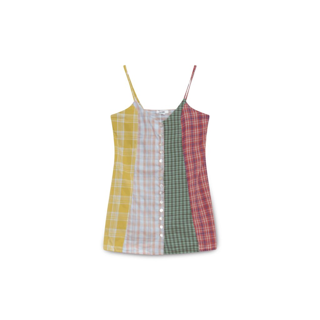 RE/DONE Plaid Button Up Dress features button up closure, adjustable straps.