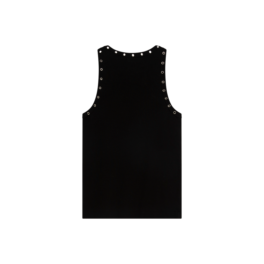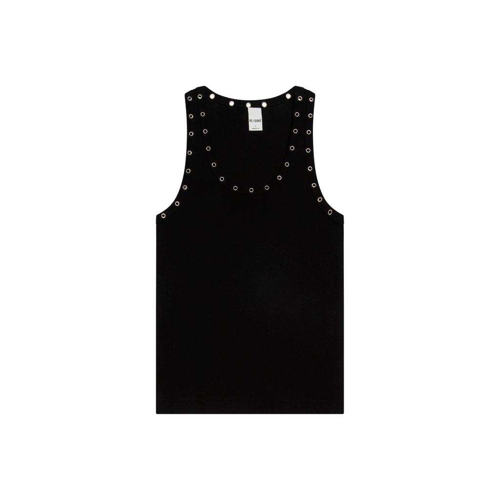 RE/DONE Tank Top features pullover fit, lace hole details along collar and sleeve openings.