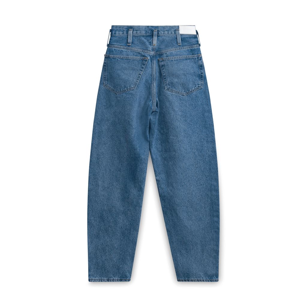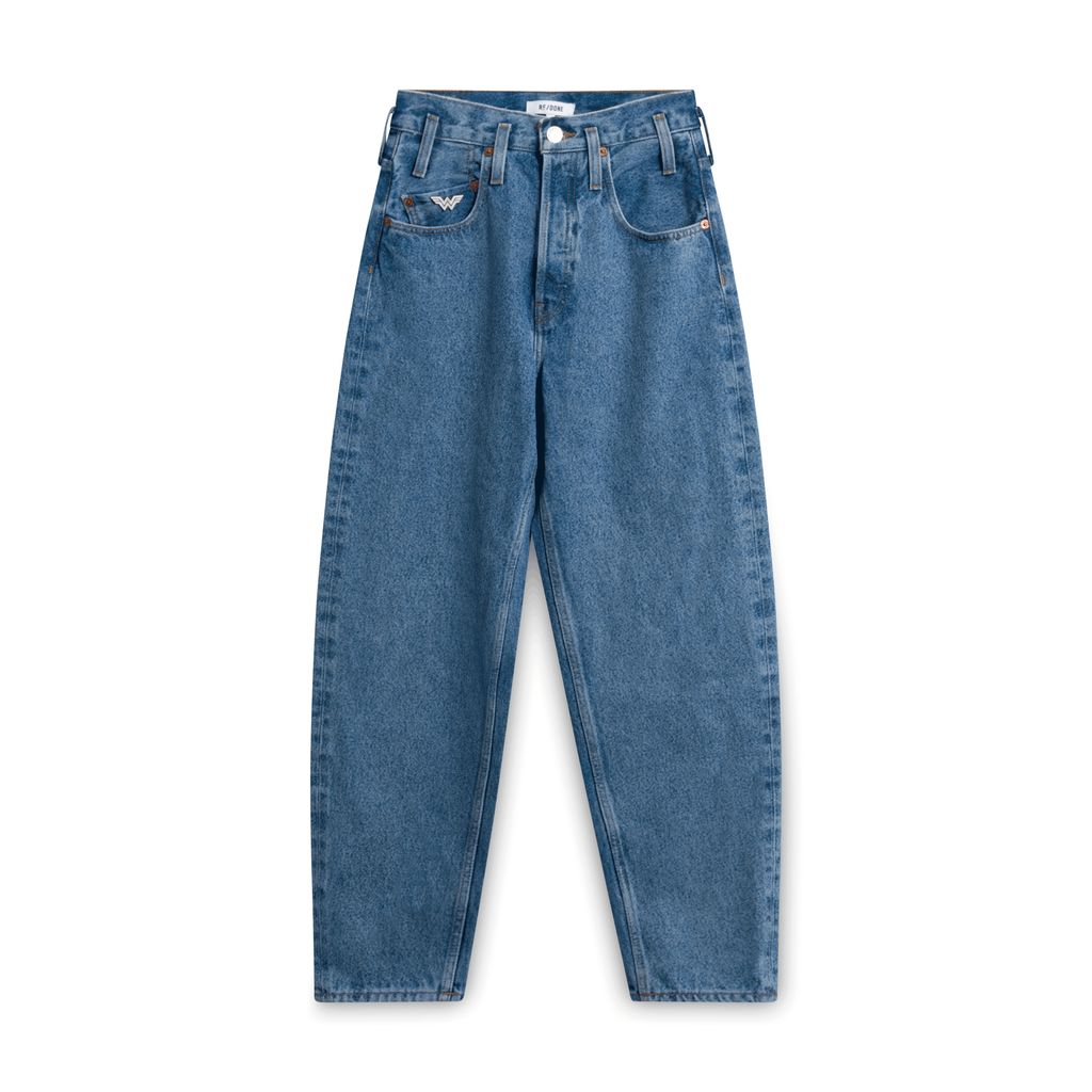 For every reason, this collaboration between Re/Done x Wonder Woman feels distinctly 80's. Starting with the high-rise waist, continuing with the exaggerated peg leg silhouette, and finishing it off with a slight acid wash blue. The Wonder Woman pin, subtly pinned into the front pocket, stylizes the jeans. Features five-pocket silhouette and silver metal hardware.
