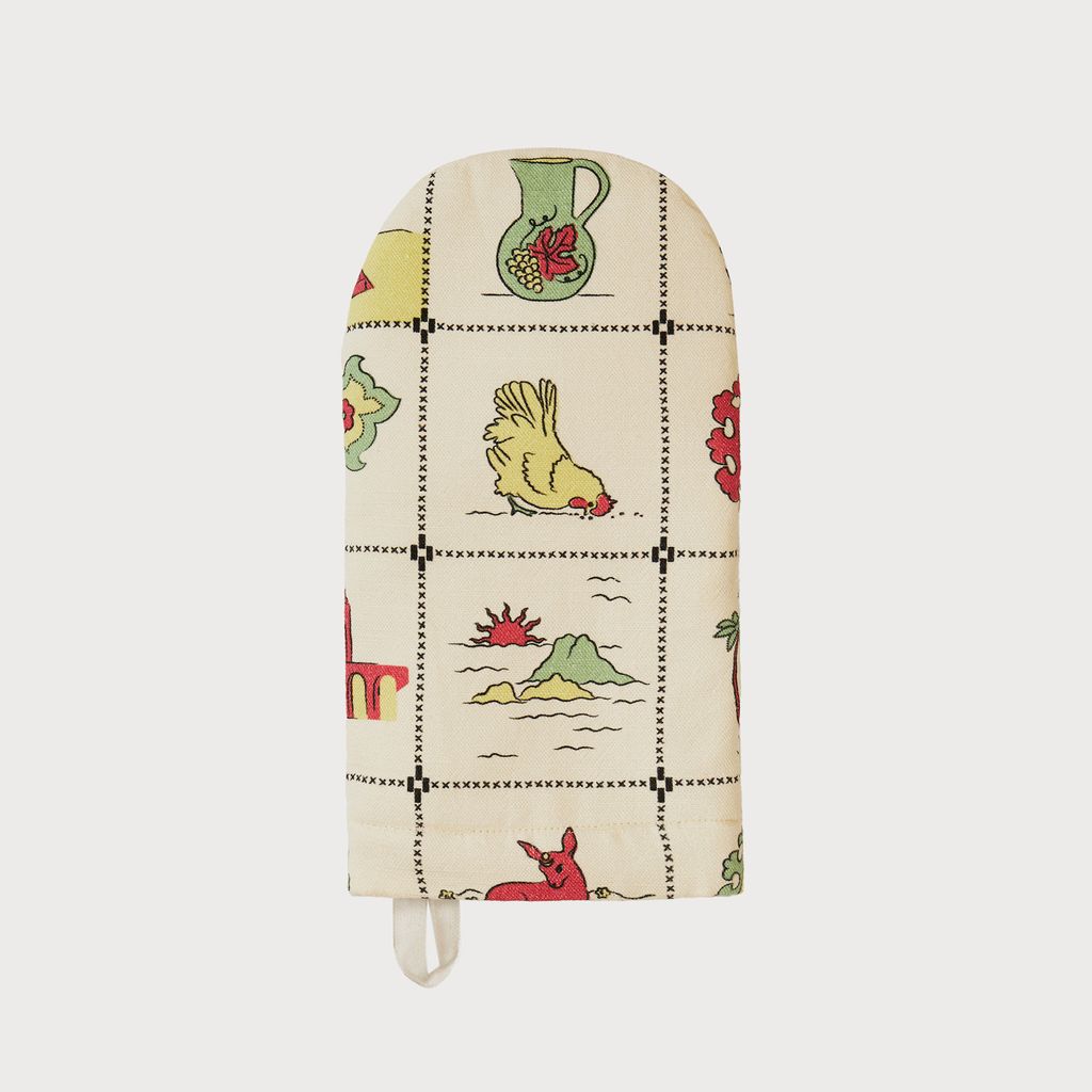 Our Redwork Oven Mitt is beautiful and practical. Every oven mitt shows a different part of the print depending on how the fabric is cut, making each one unique!