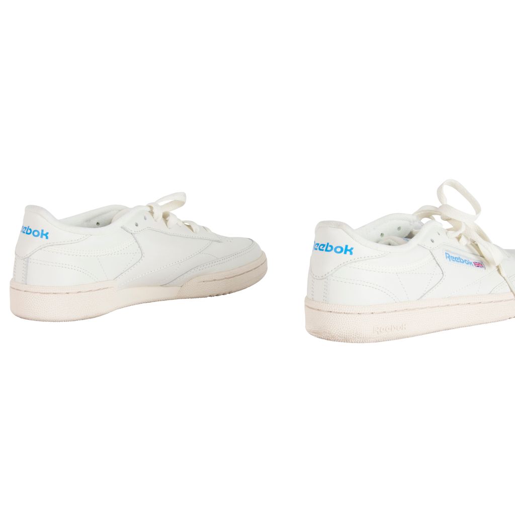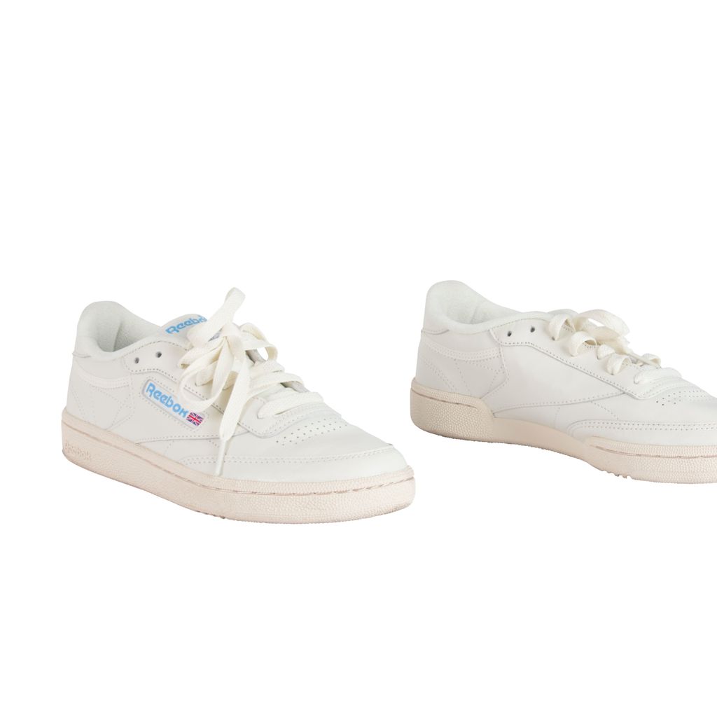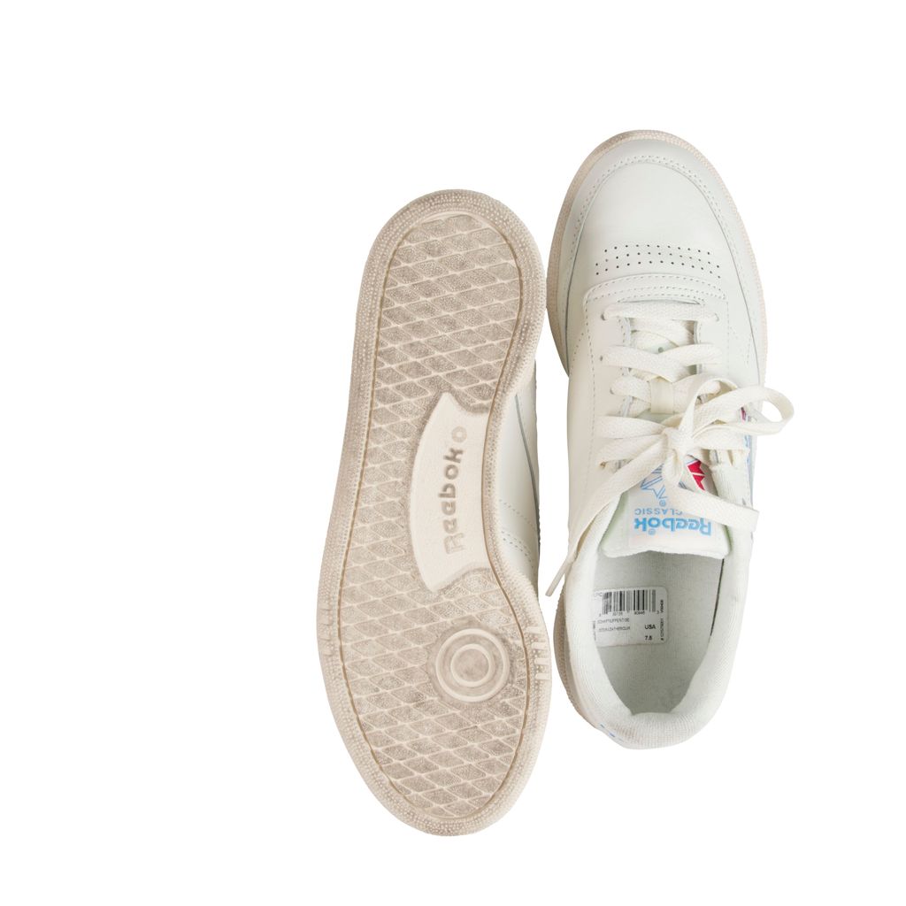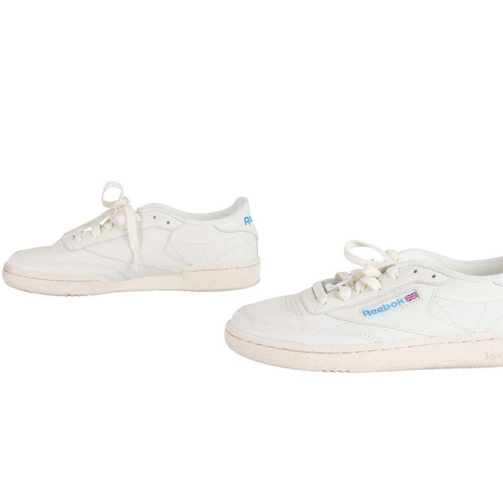 Amp up your sneaker style with this Reebok rendition of the classic Club C kick. Low-cut design with a soft leather upper, die-cut EVA midsole and molded sockliner for cushioned support. Features a timeless Reebok window box logo at quarter panel and ultra-padded tongue. Set on a high-abrasion rubber outsole. Gently worn, in excellent condition. Marks and scuffs as pictured.