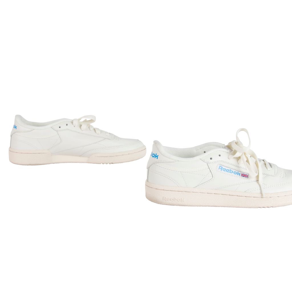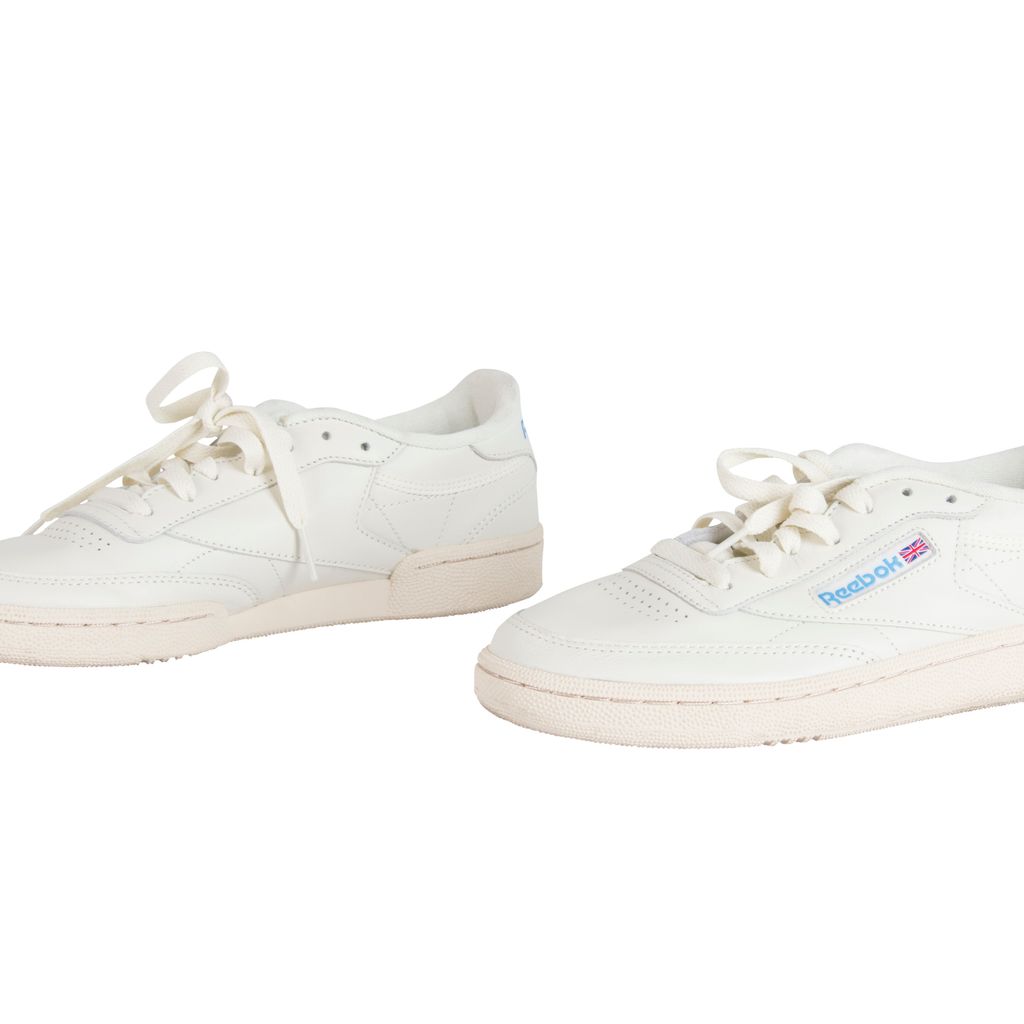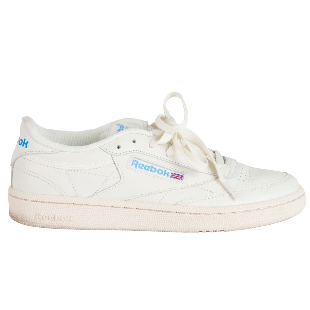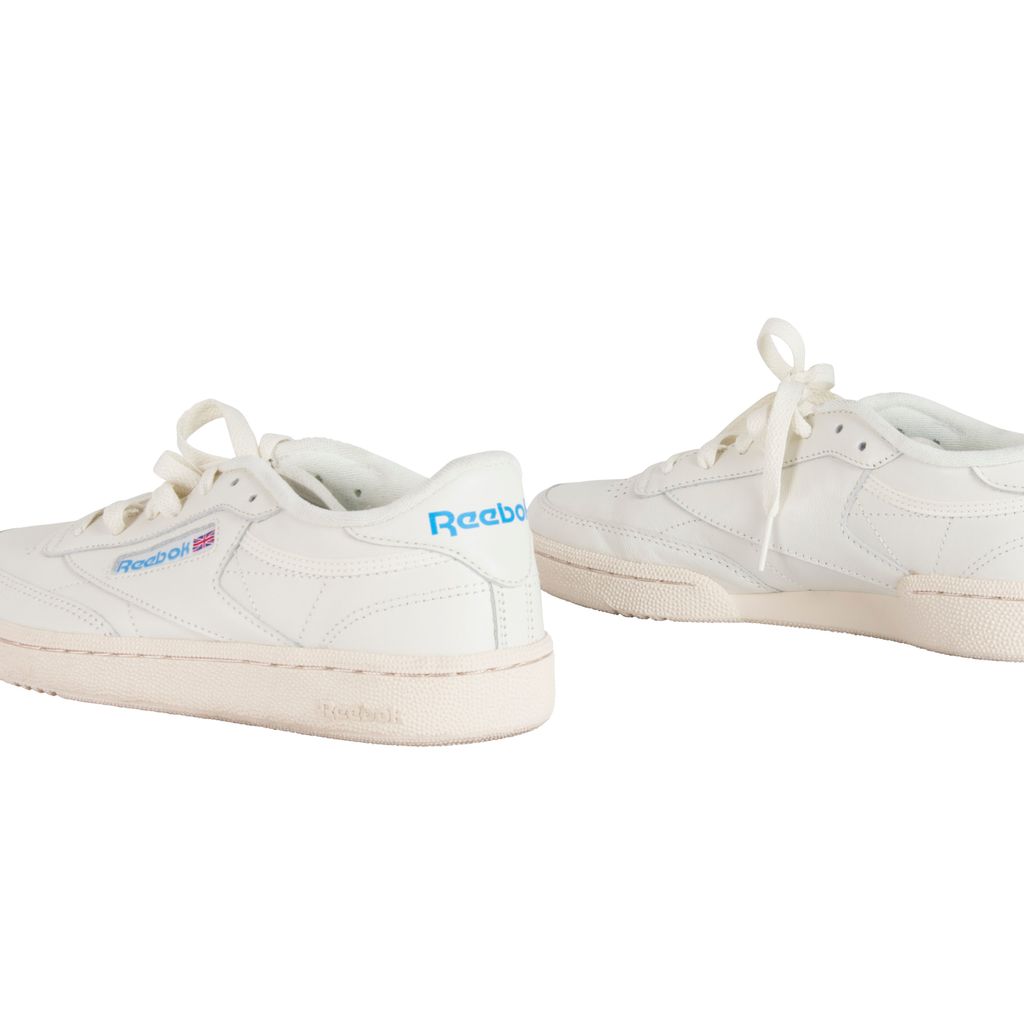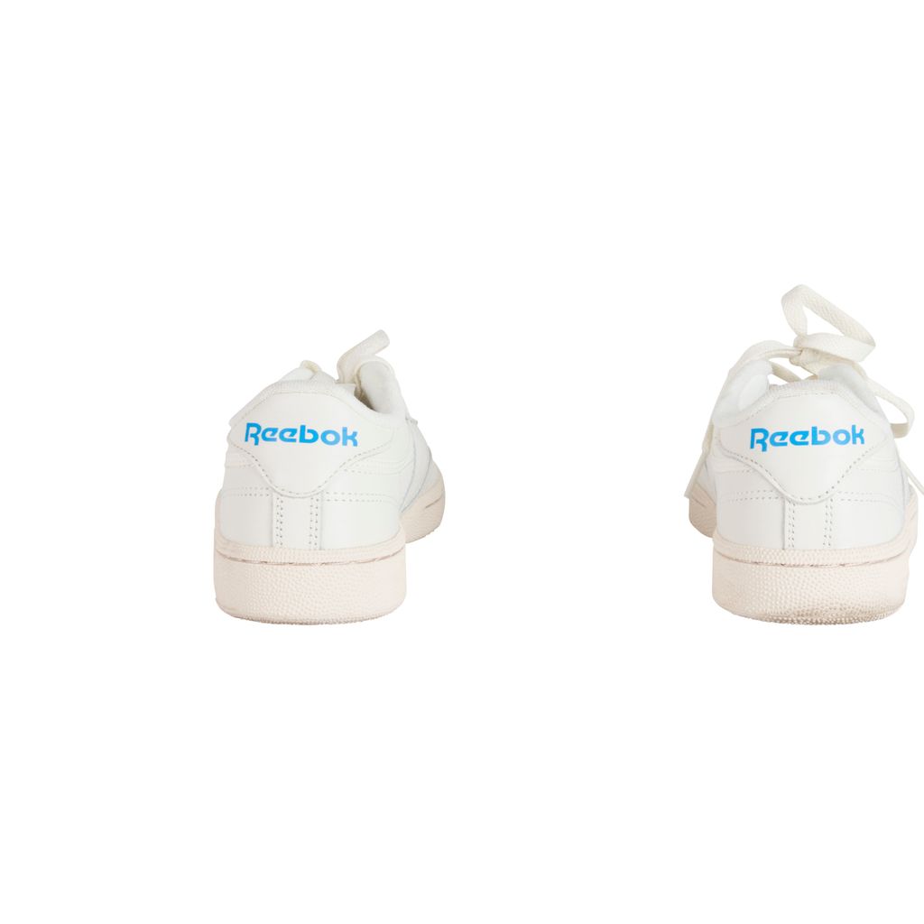Amp up your sneaker style with this Reebok rendition of the classic Club C kick. Low-cut design with a soft leather upper, die-cut EVA midsole and molded sockliner for cushioned support. Features a timeless Reebok window box logo at quarter panel and ultra-padded tongue. Set on a high-abrasion rubber outsole. Gently worn, in excellent condition. Marks and scuffs as pictured.