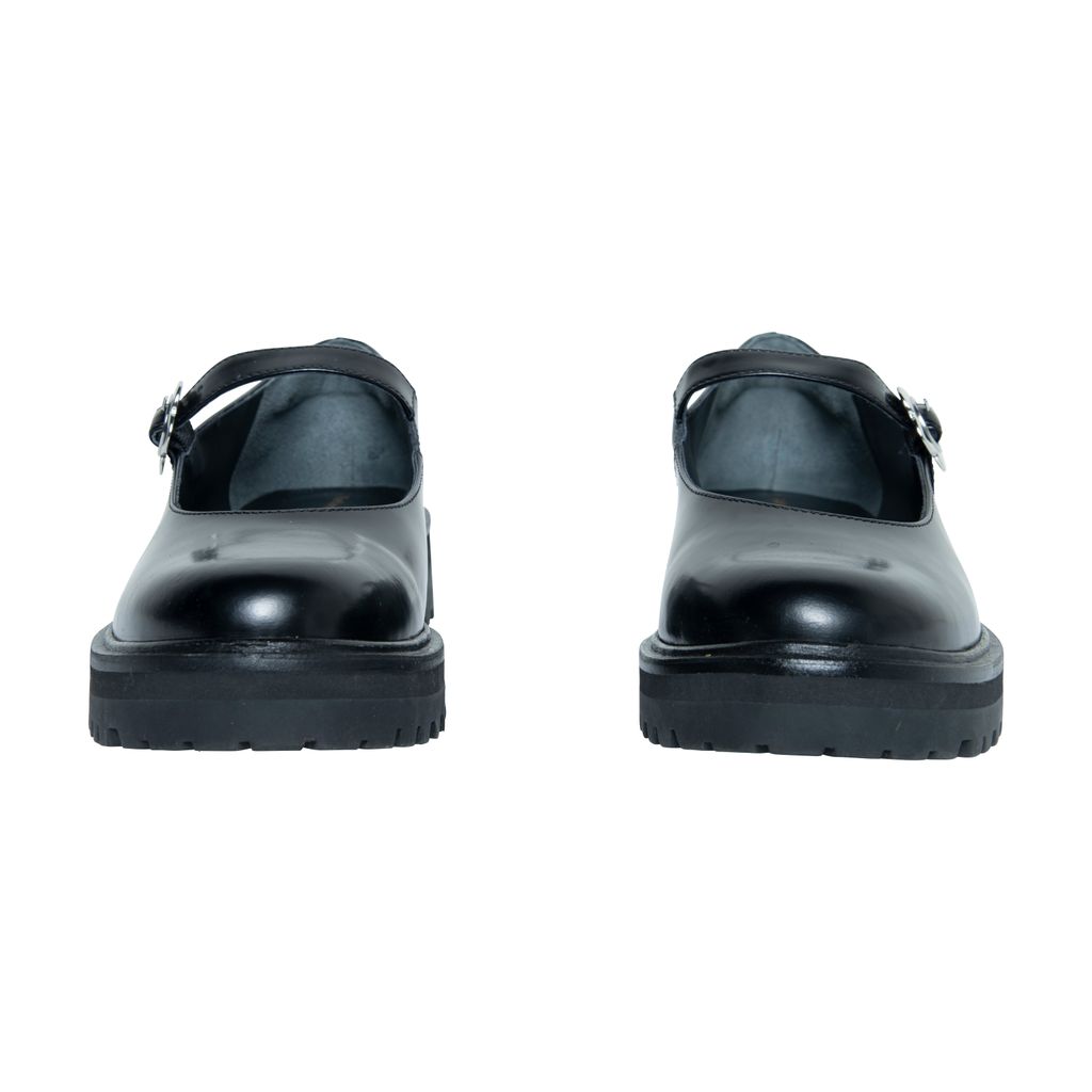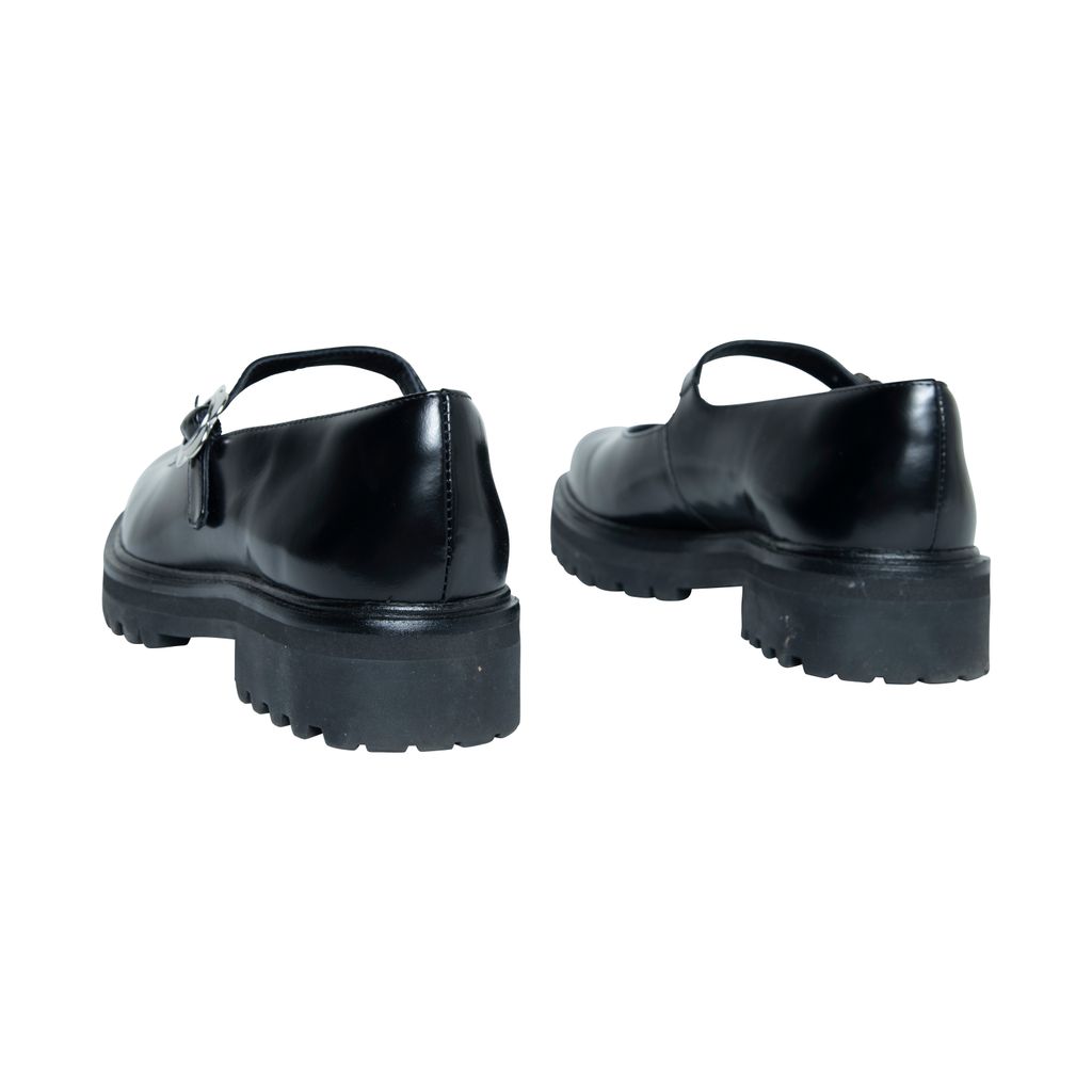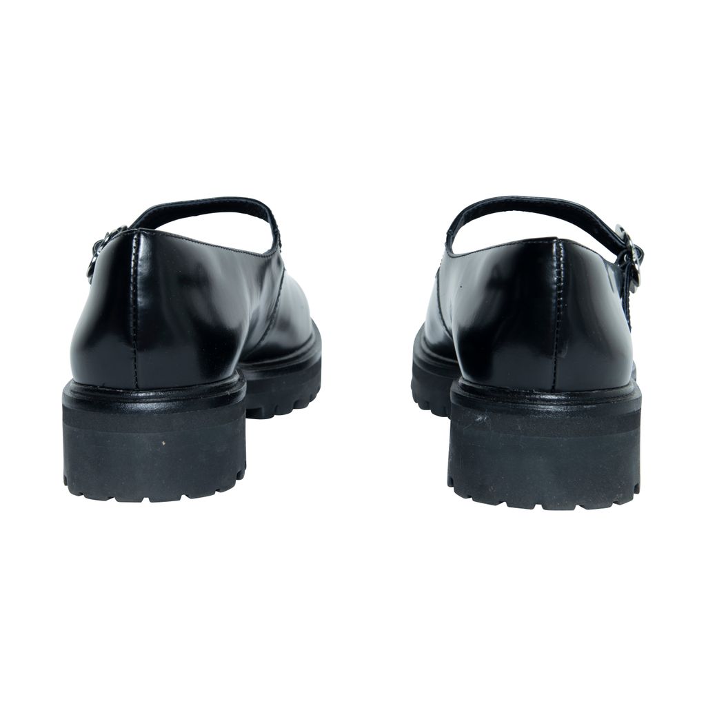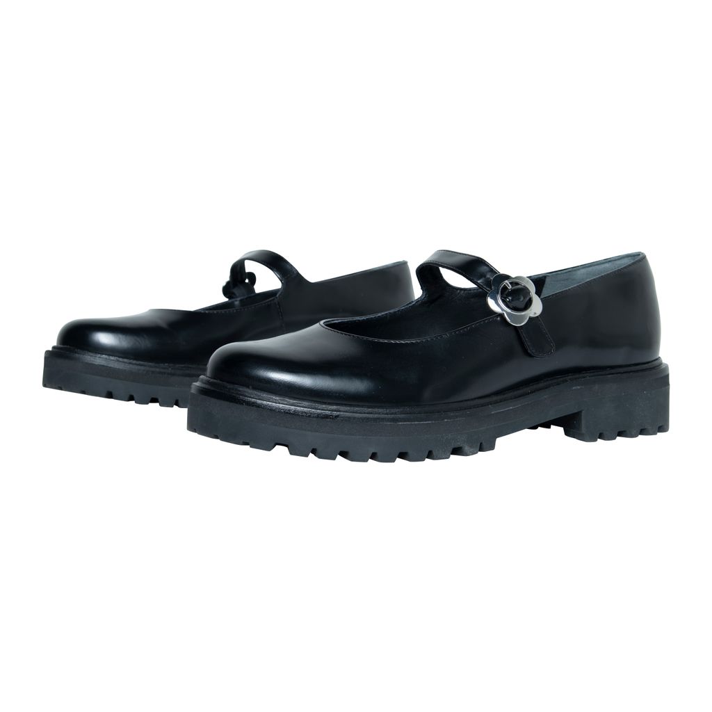 Reformation Adalynn Chunky Maryjane features lug sole, floral buckle detail, and round toe.