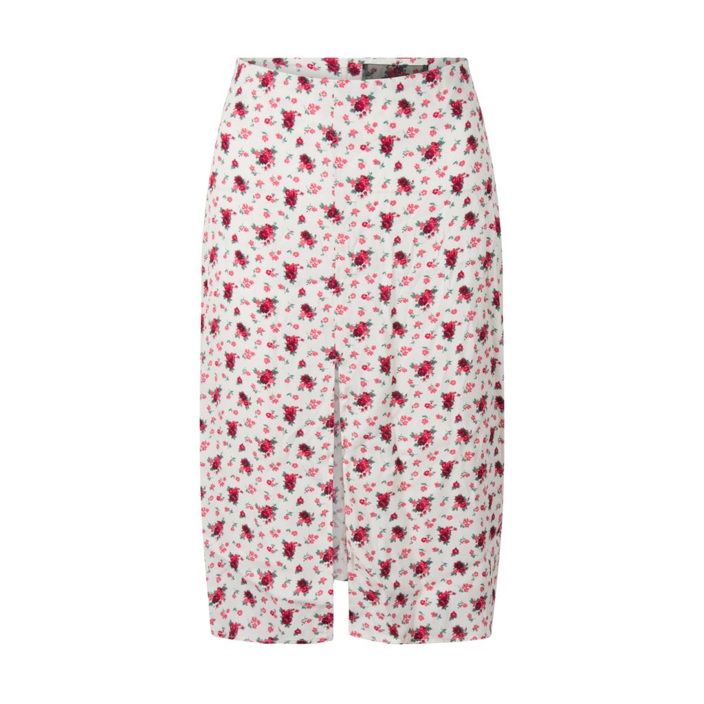 This lightweight floral skirt from Reformation features side slit detail, a hidden back-zip closure, and has a knee-length silhouette. Perfect for spring gently worn in good condition.