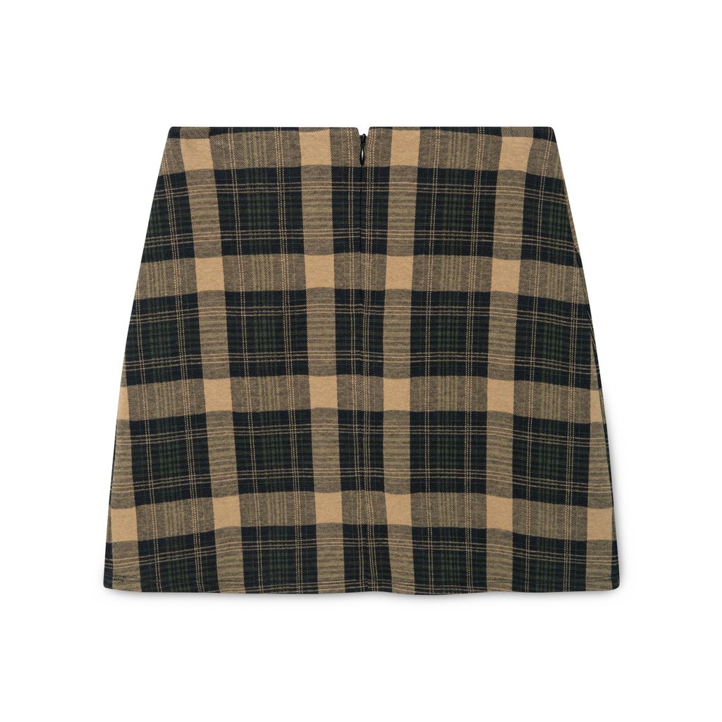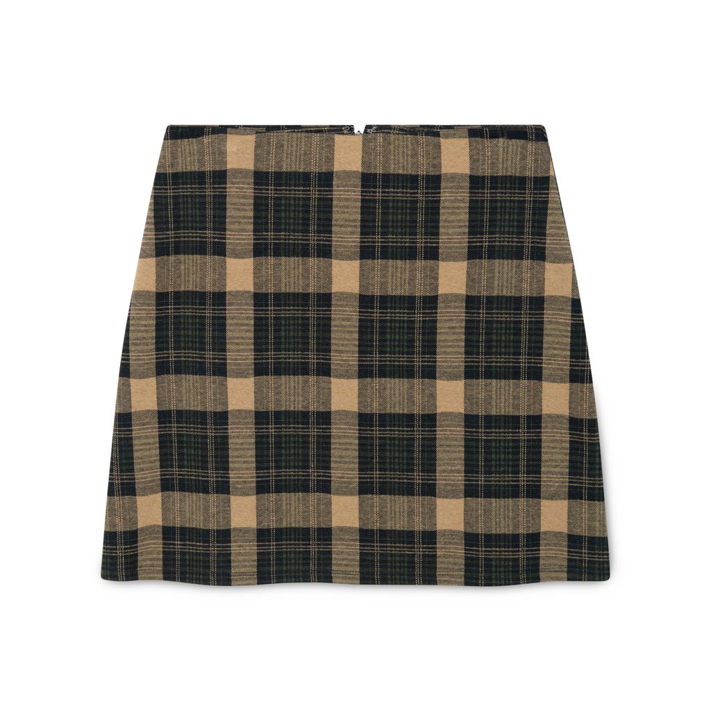 Reformation Plaid Miniskirt features a high waist and plaid pattern.