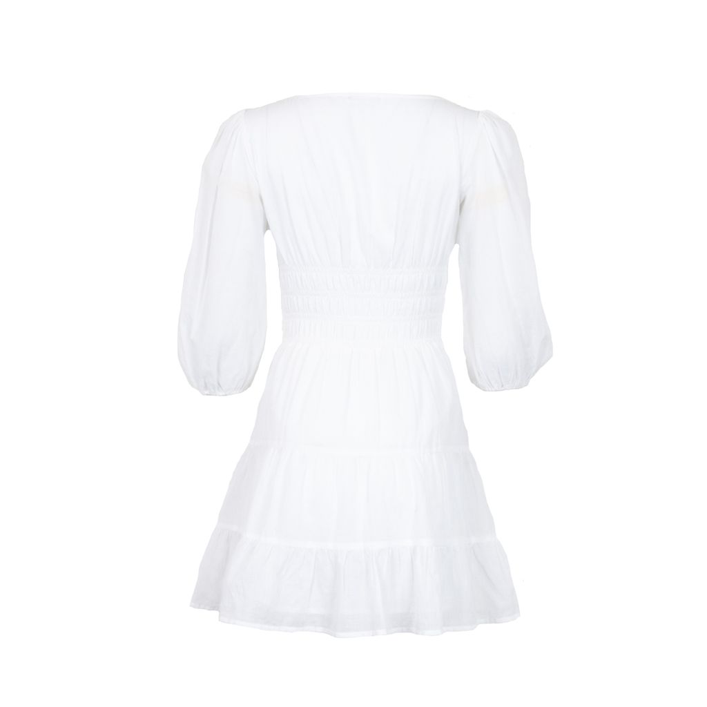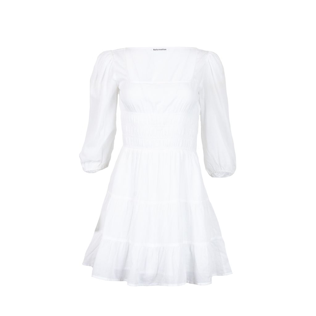 Look like an angel any day of the year with this breezy Reformation dress. The loose, flouncy skirt and smocked bodice can accommodate many different body shapes and the square neckline as well is universally flattering.