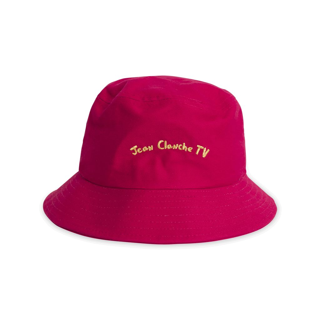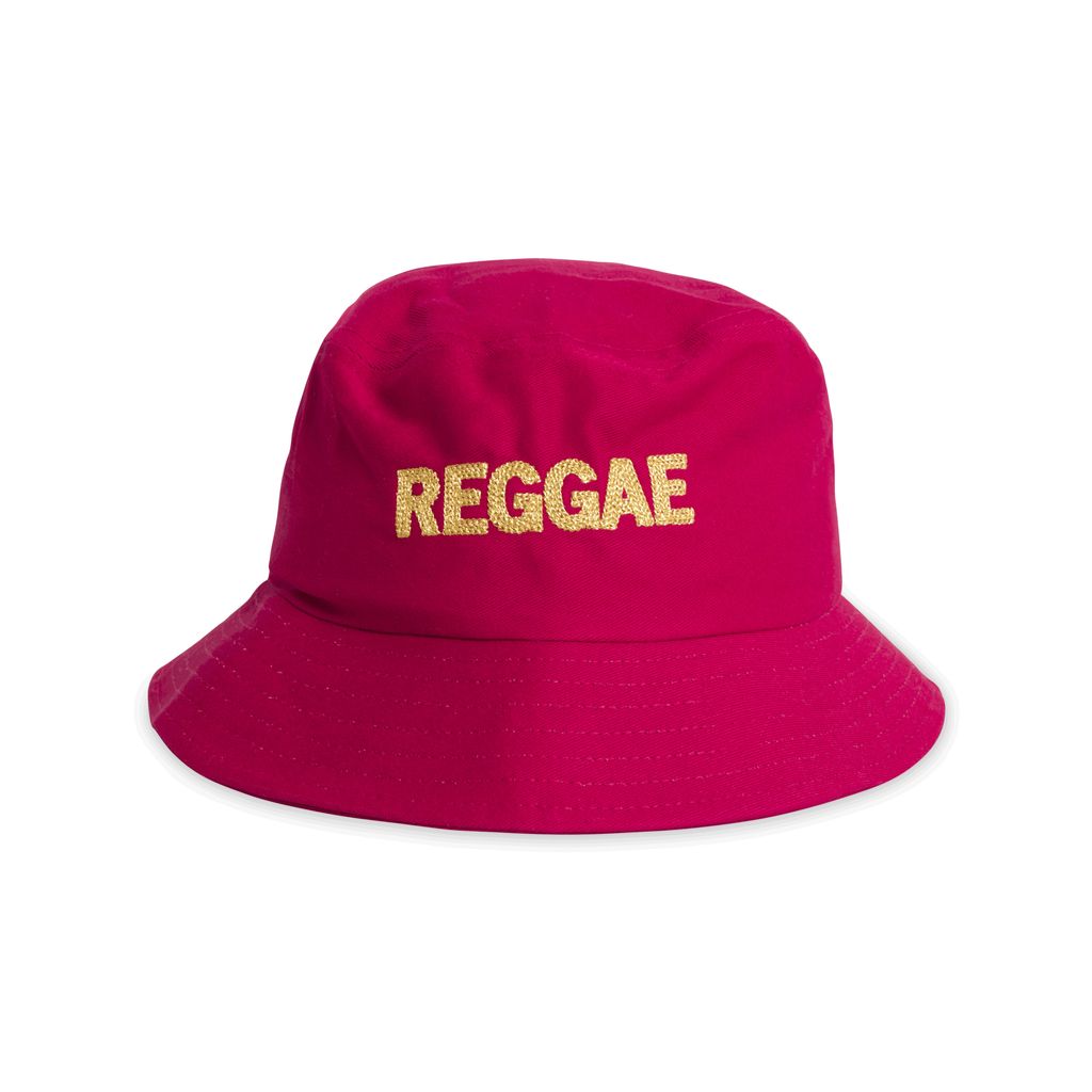 This red bucket hat features embroidered Reggae text, and the Jean Clanche TV logo in the back.