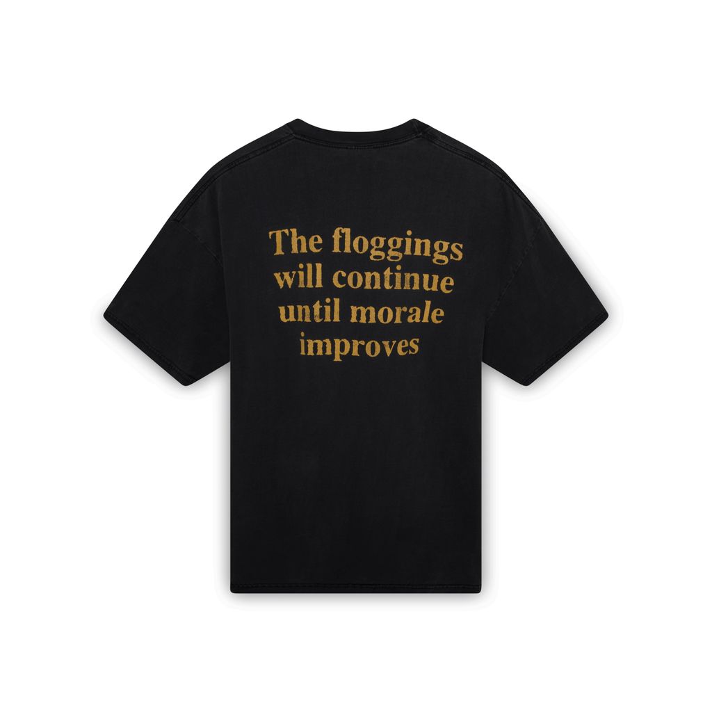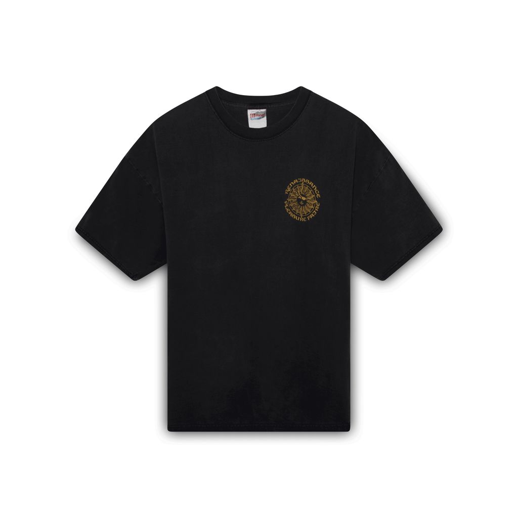Renaissance Pleasure Tee features renaissance pleasure logo and graphic on the chest, and text in the back.
