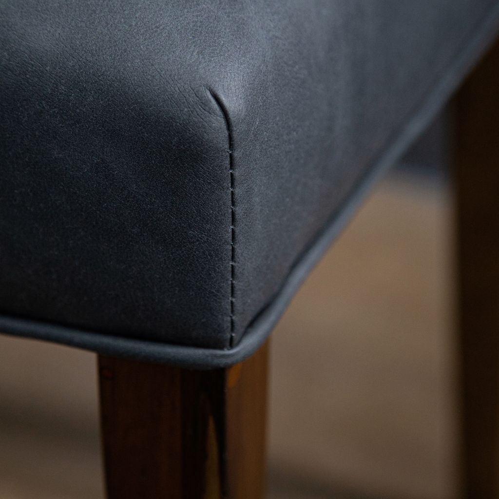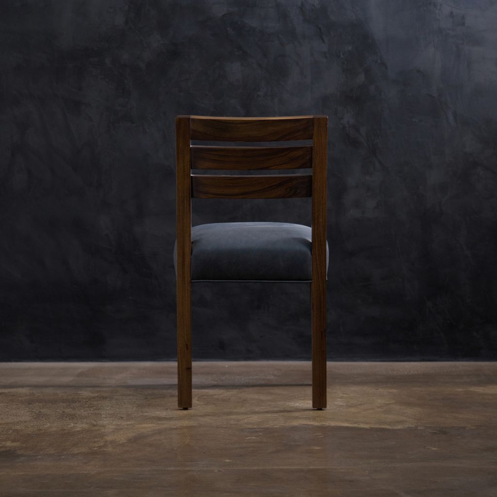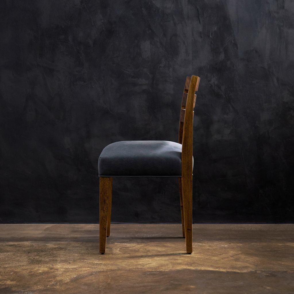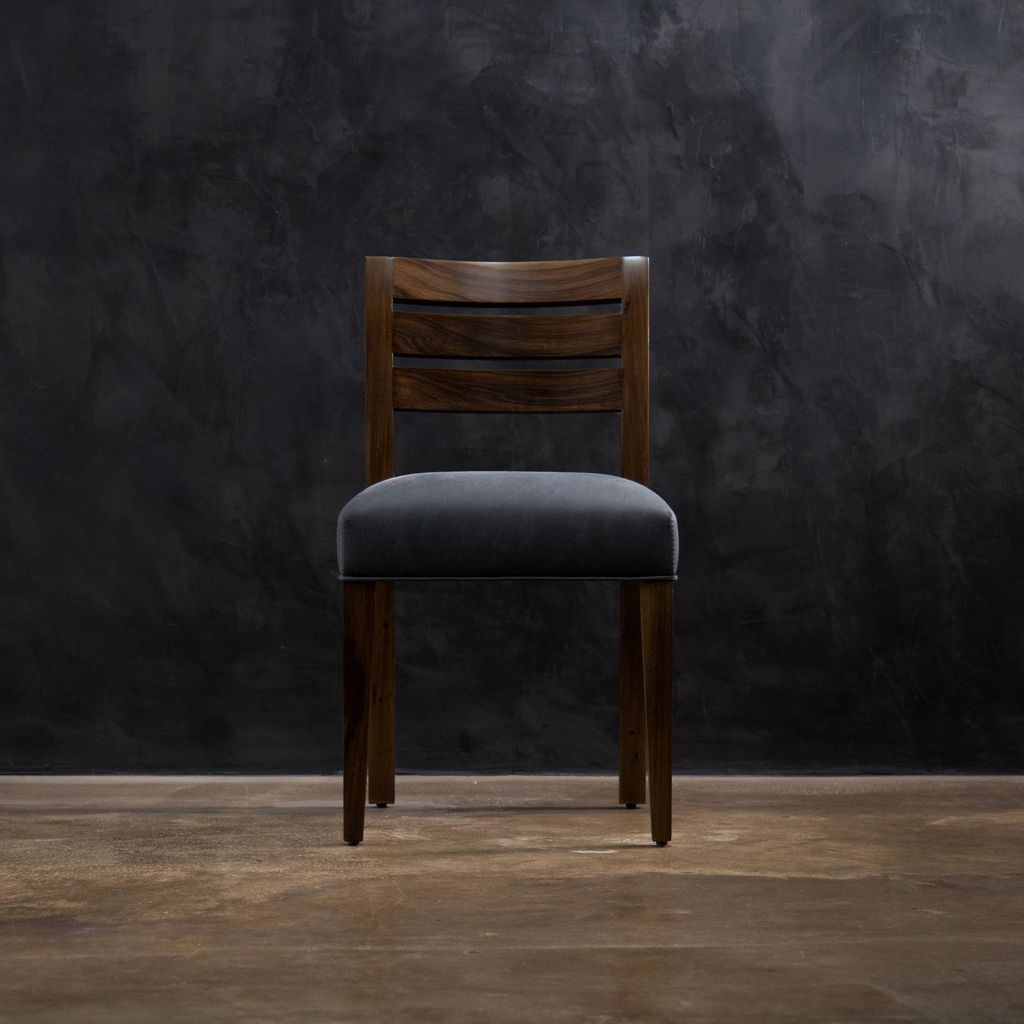 The Renzo chair features a solid wood frame with a slatted back and a gently curving back leg. Like all the pieces in the Costantini collection, this is handmade in our family-owned workshop in Buenos Aires since 2002, and can be made as a stool, bench, or booth. Usually in stock as shown and available for quick ship. Shown in Argentine rosewood finish.