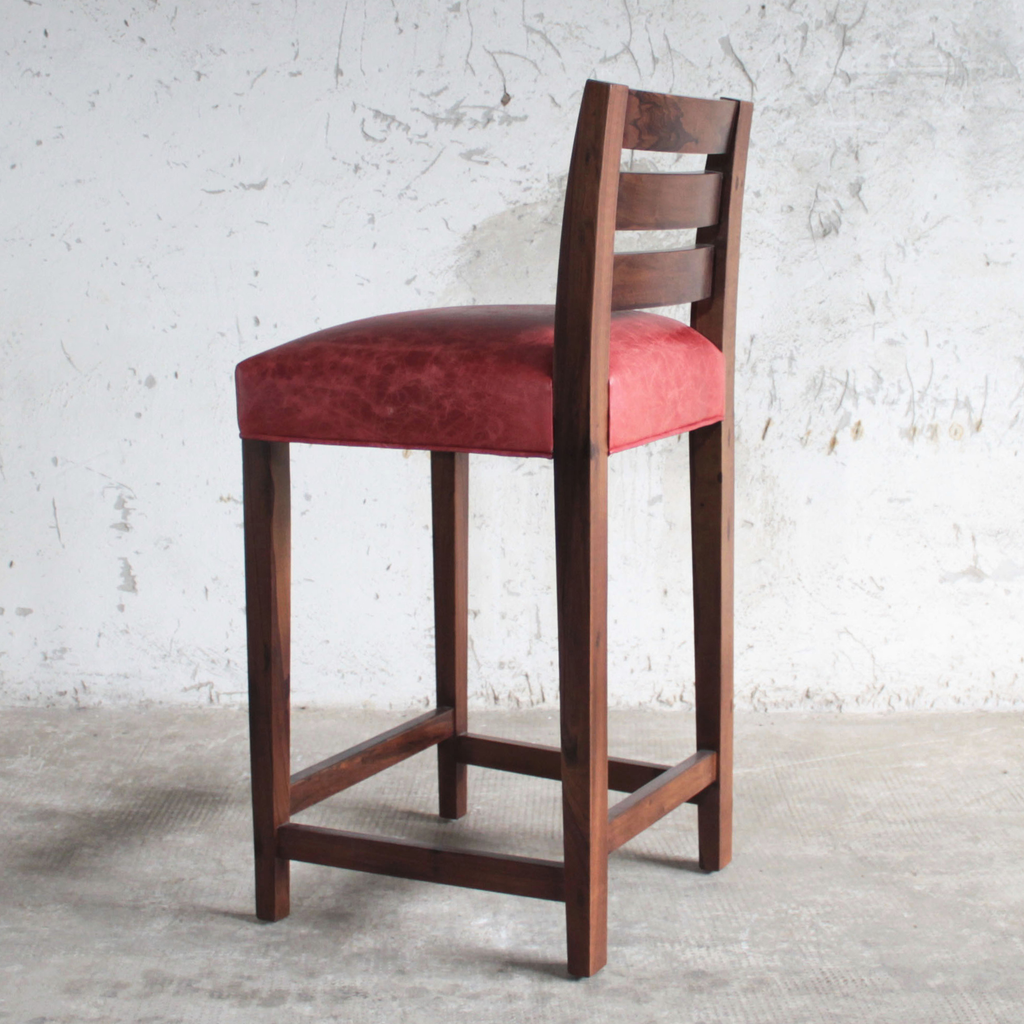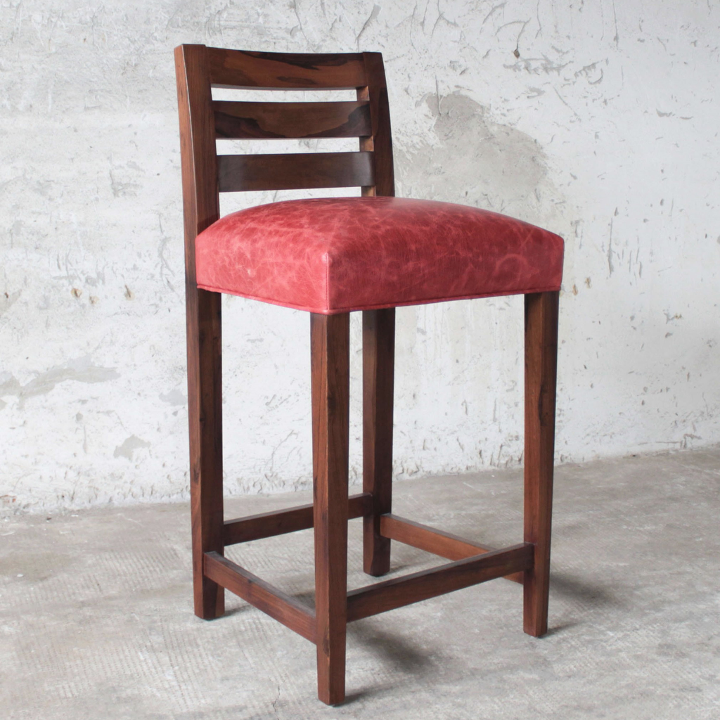 The Renzo Stool features a solid Argentine Rosewood frame with a slatted back and a gently curving back leg. It is available in any of Costantini's leathers or in your choice of COM/COL (discount applies).