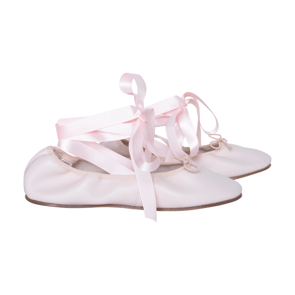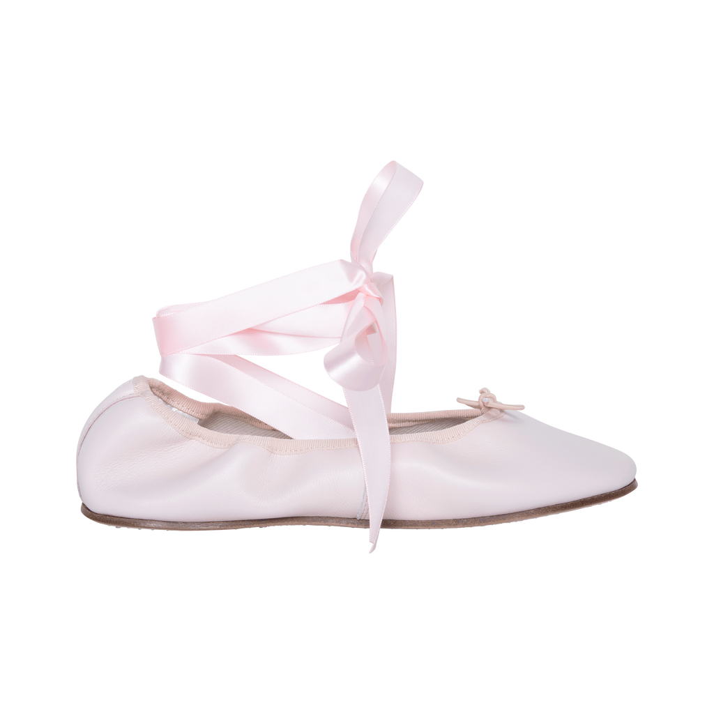 Repetto Pink Sophia Ballerina Flats features bow accent at vamp, grosgrain trim at collar, self tie wraparound ankle straps, cotton twill lining, and leather sole.
