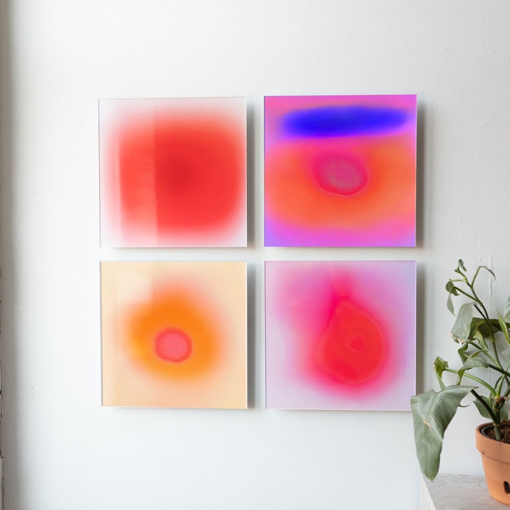 12x12" gallery quality acrylic paint, edition of 10. Aluminum mounting hardware included. Each print is made-to-order and will ship 1-2 weeks of order date. These modular sets can be mixed, matched and rearranged to suit your space.