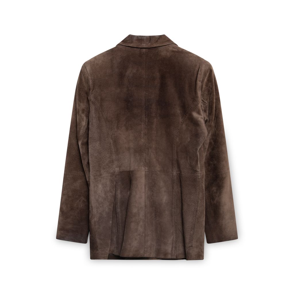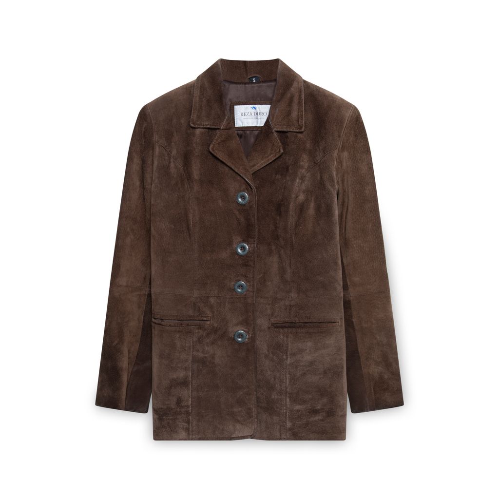 Reza Duro Brown Suede Coat features shoulder pads, front button closure and two front pockets.