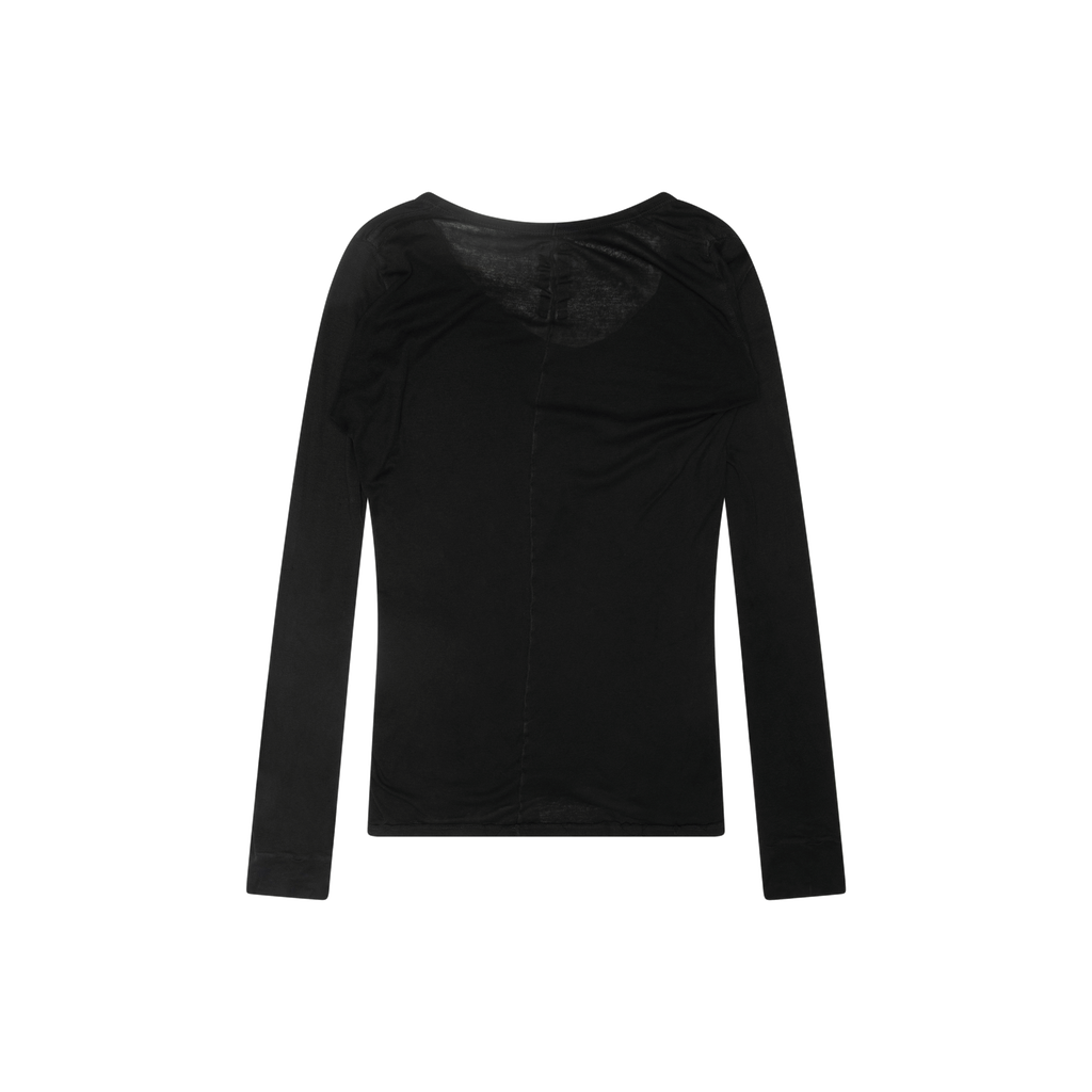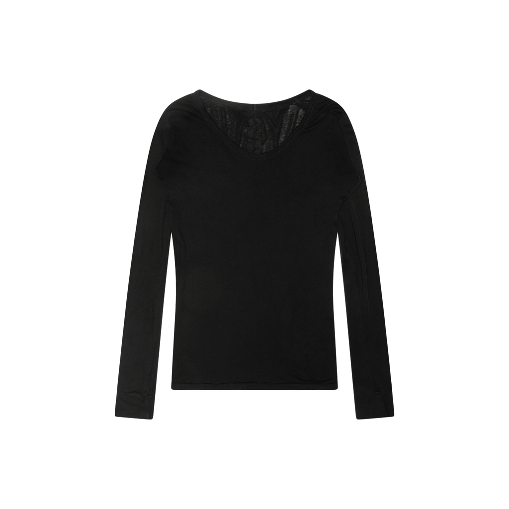 Rick Owens Black Long Sleeve Shirt features scoop neck.