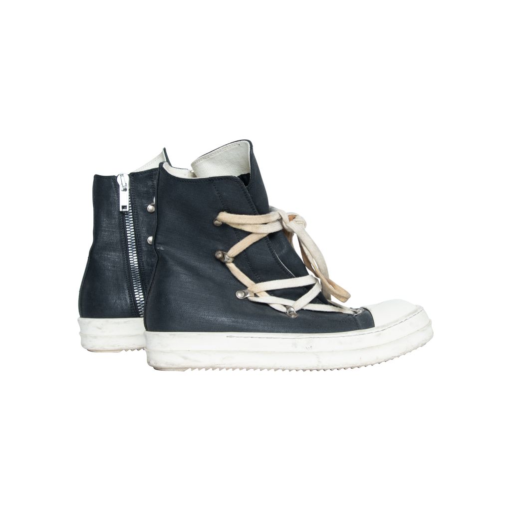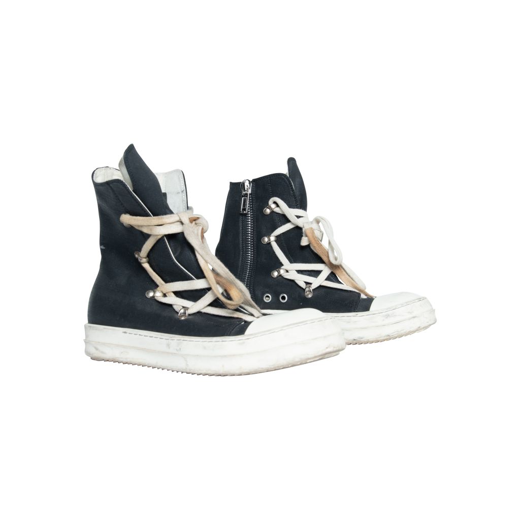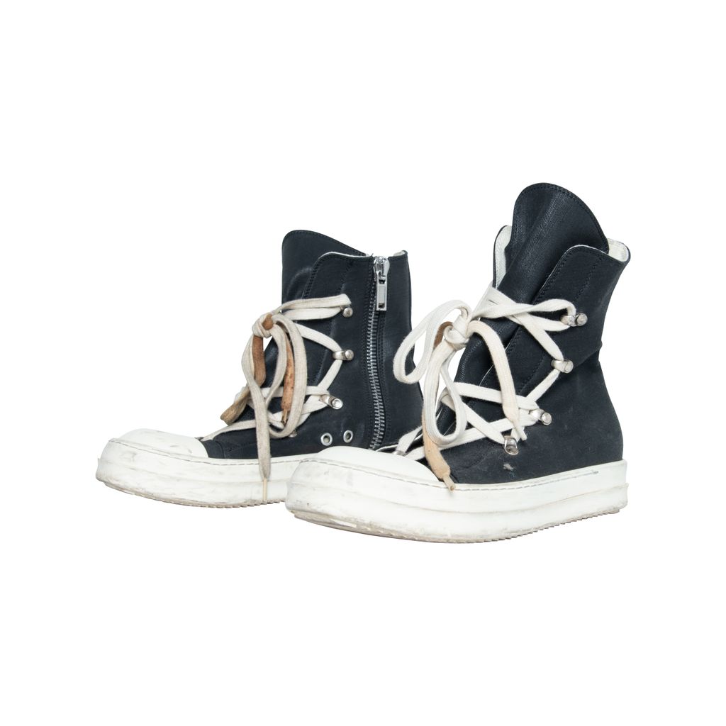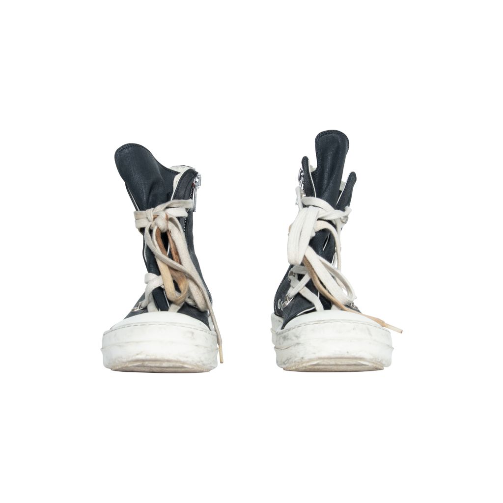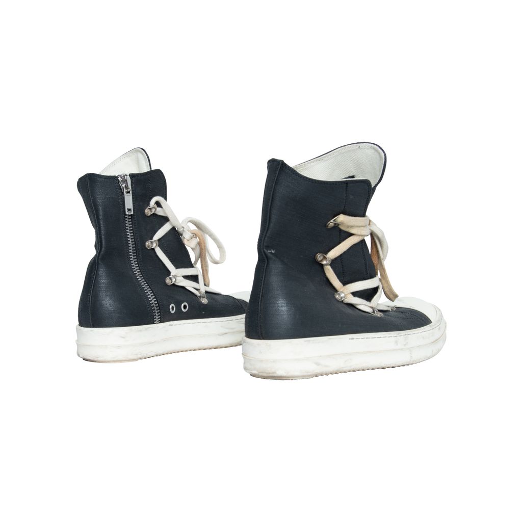 Rick Owens Drkshdw pentagram Ramones hi top sneakers features laces at front, and closure zipper at inner.
