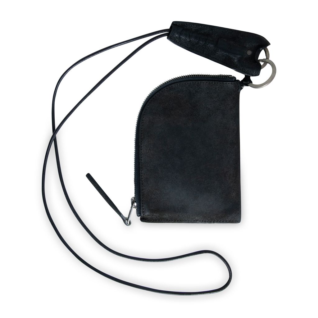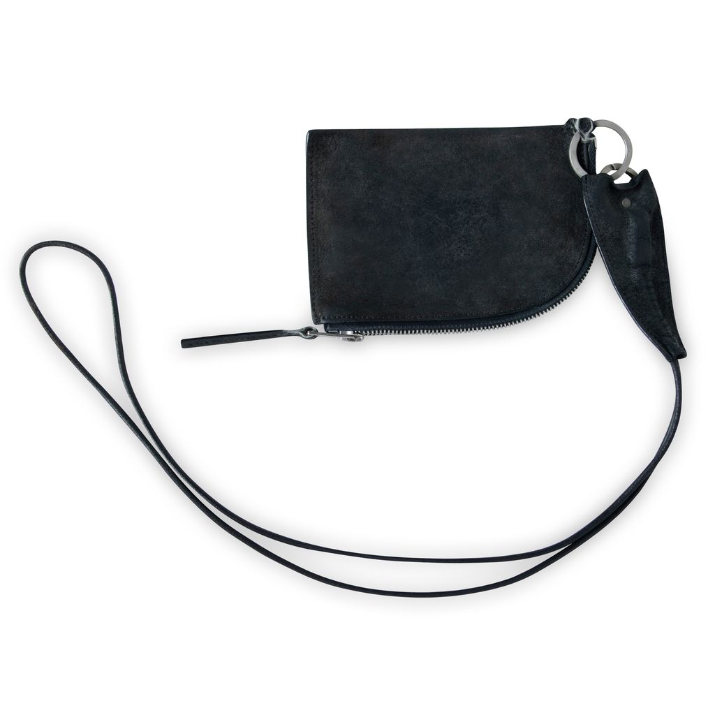 Rick Owens F/W 17 leather neck wallet features zip wallet with removable neck tie and silver hardware. This item comes with original box.