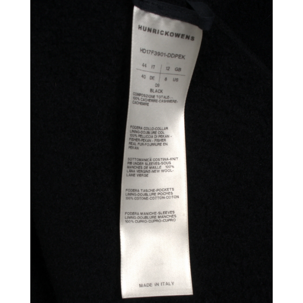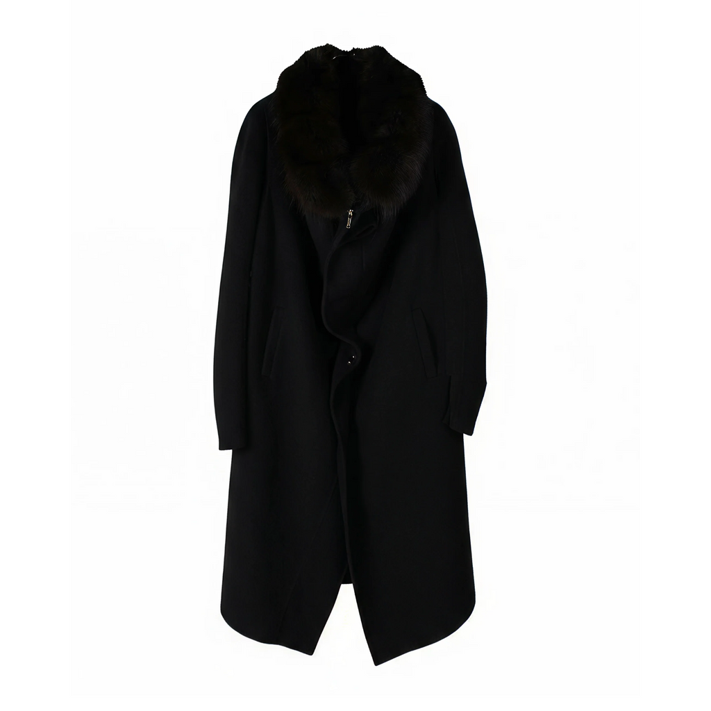 This coat is a dramatic statement piece from Rick Owens’ HUN line, crafted almost entirely in mink fur for maximum luxury. It combines the avant-garde silhouette and bold aesthetic of the label with premium fur materials, making it both a high-fashion garment and a tactile luxury item.