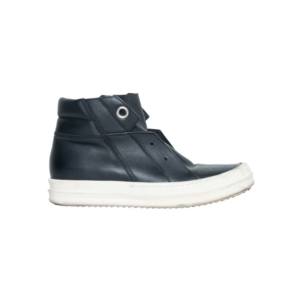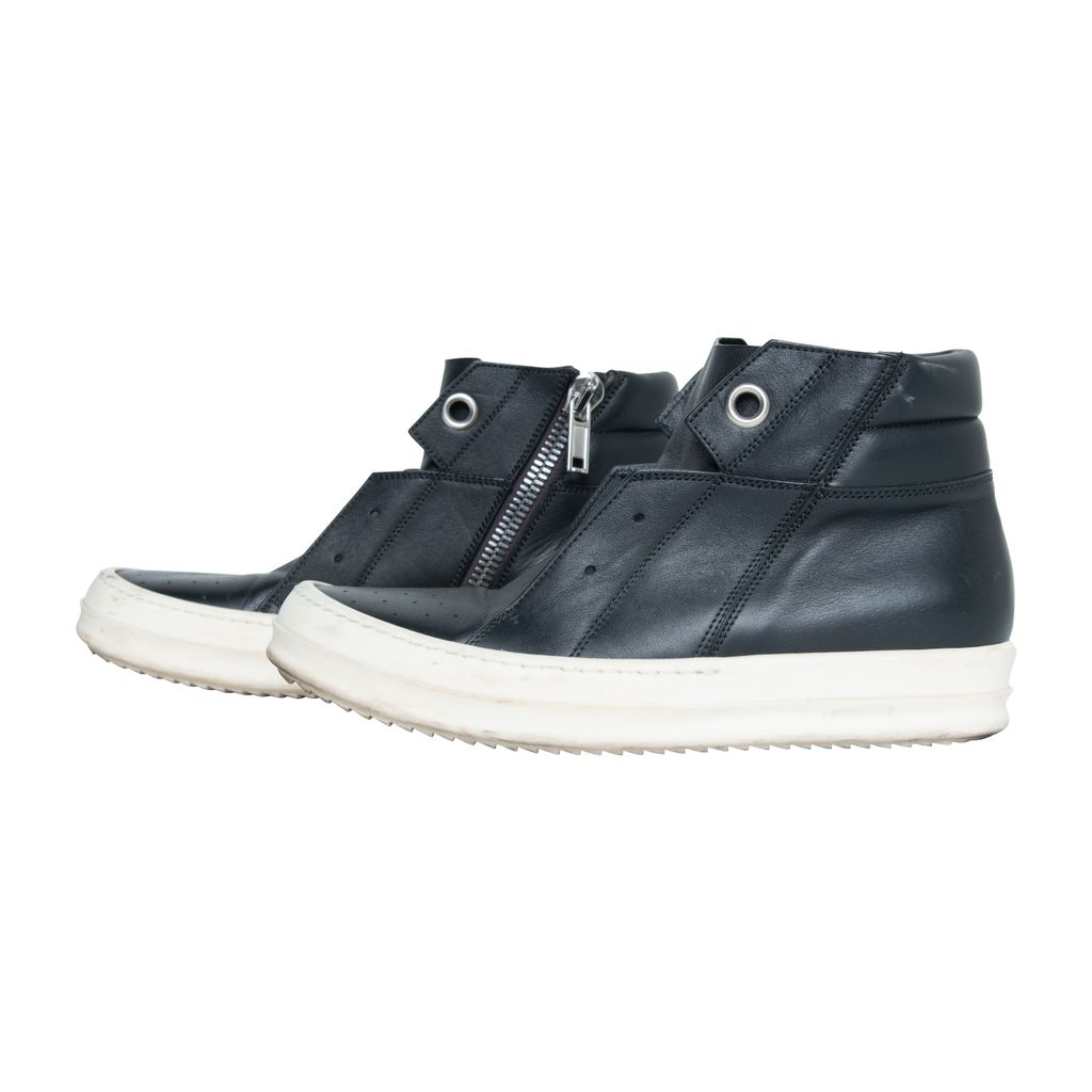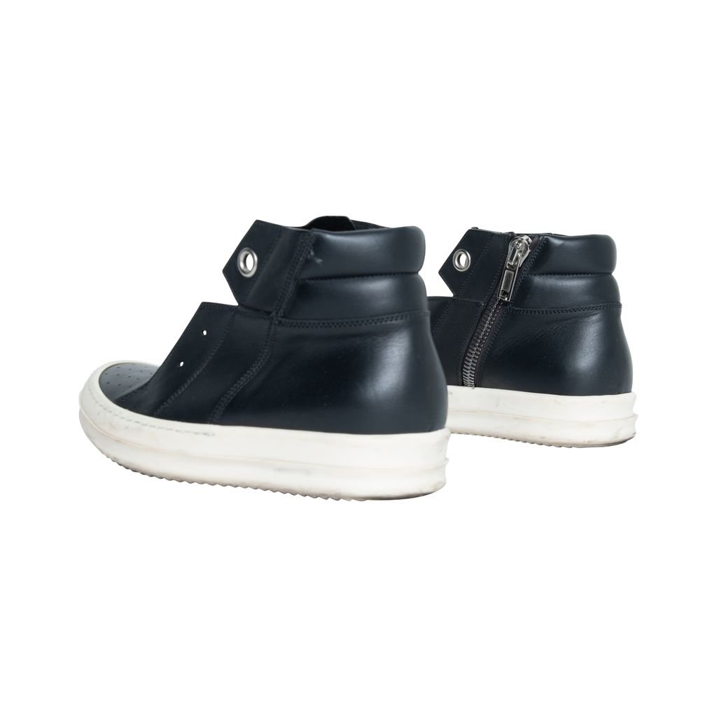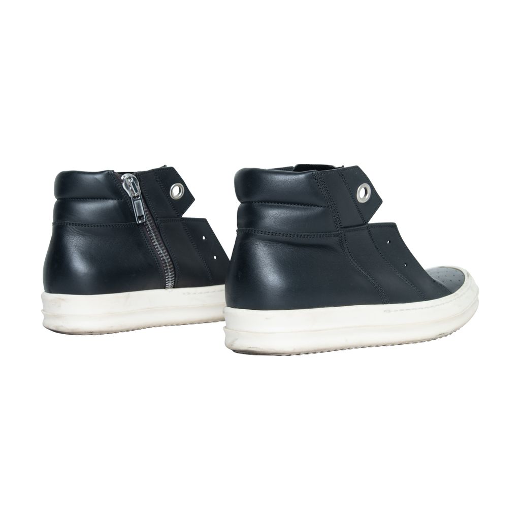 Rick Owens Island leather dunk Ramones features round toes and inner closure zipper.