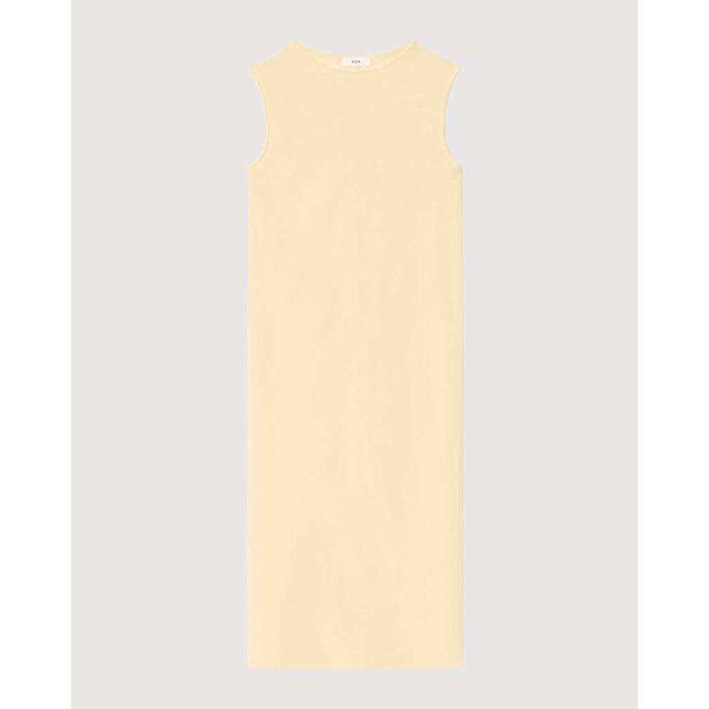The Rier Dress Sleeveless Bias in Butter Gaze is a fluid sleeveless dress designed with a soft bias cut that drapes naturally along the body. Defined by a clean neckline and elongated silhouette, this Rier piece reflects the brand’s understated approach to contemporary tailoring and minimalist summer dressing.