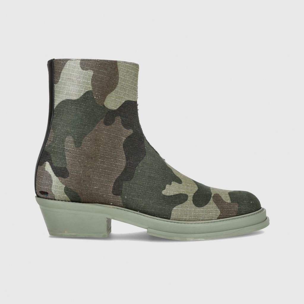 424 Westcoast Leather Boot in Camo features ankle high design for versatile styling, side zip closure for easy wear, leather lining for a luxe feel, low blook heel for all-day comfort, rip stop fabric with military camo, and print for a rugged urban look.