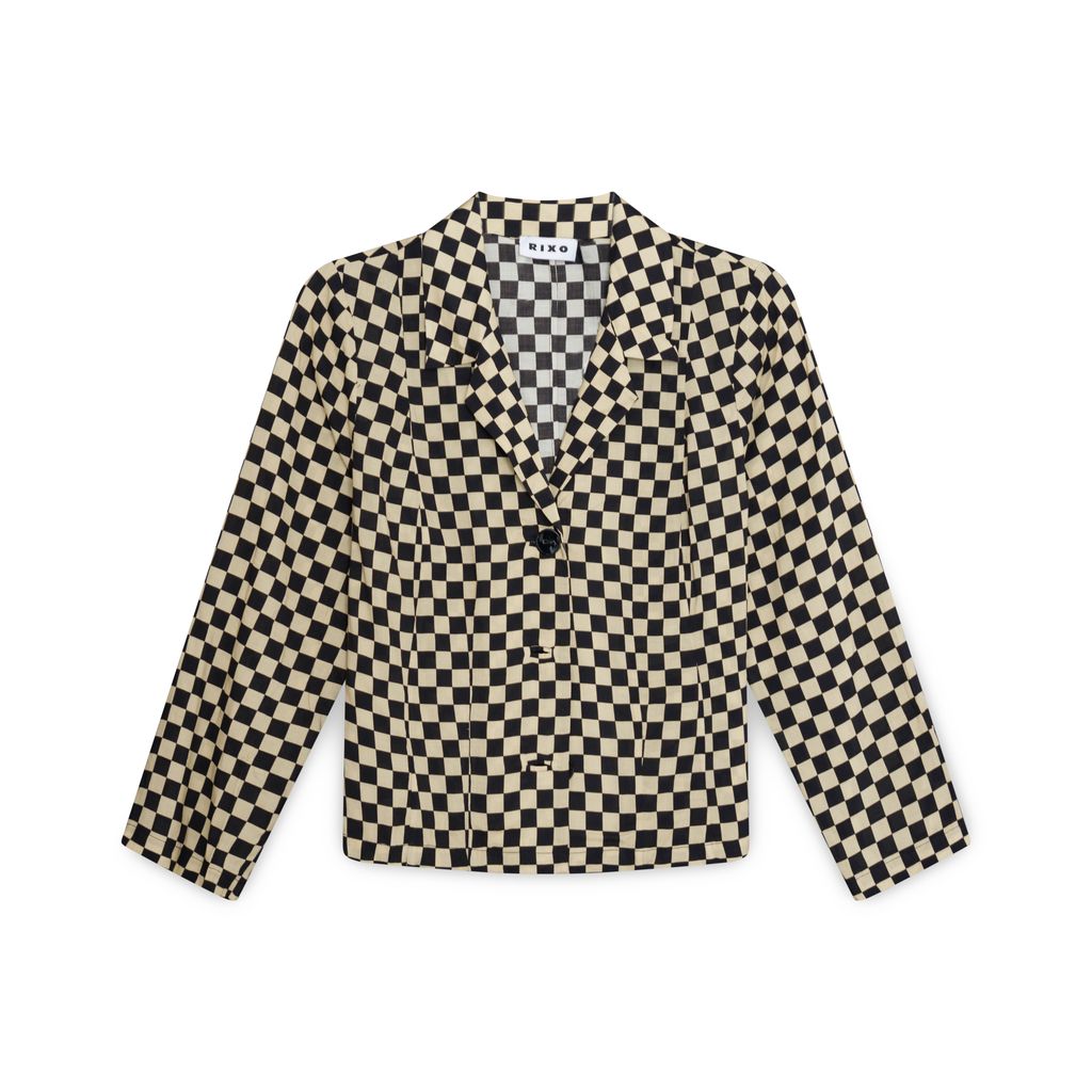 Rixo Maisie Checkered Shirt features checkered pattern throughout, button up closure, 100% viscose.