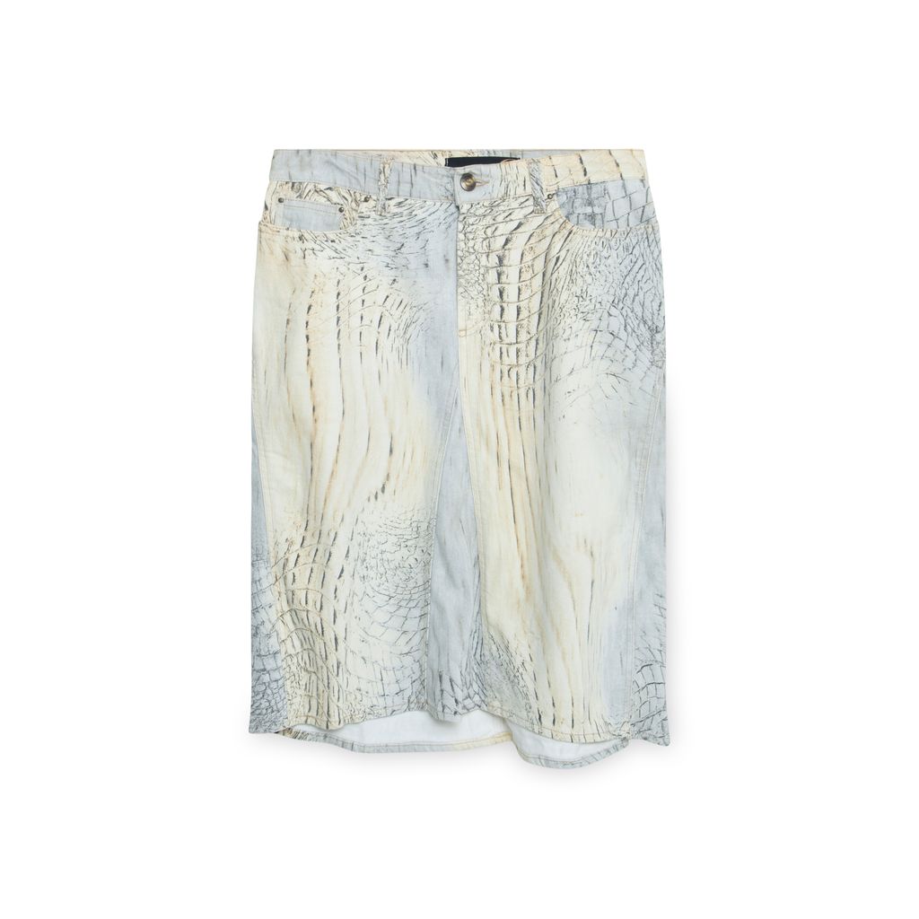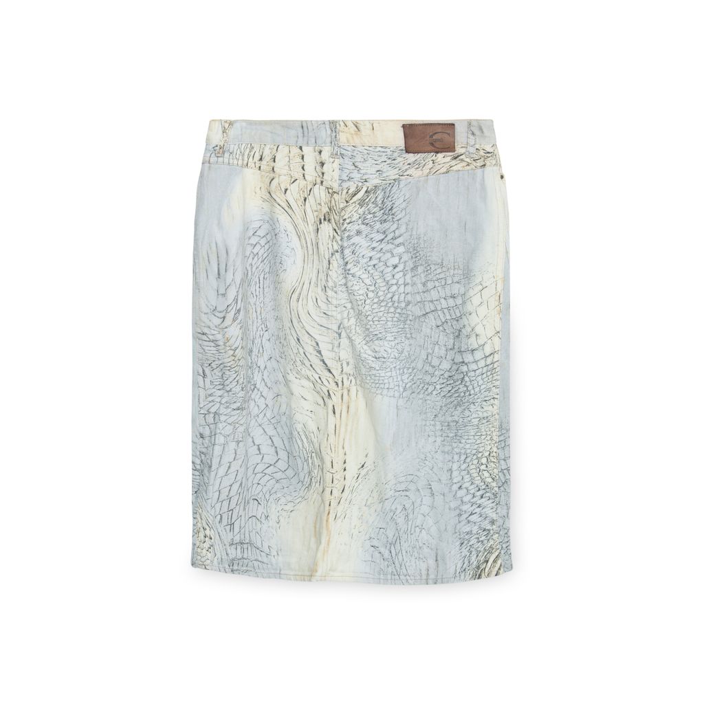 Roberto Cavalli Crocodile Print Midi Skirt features front zip closure, 3 pocket styling, and all over crocodile skin print.