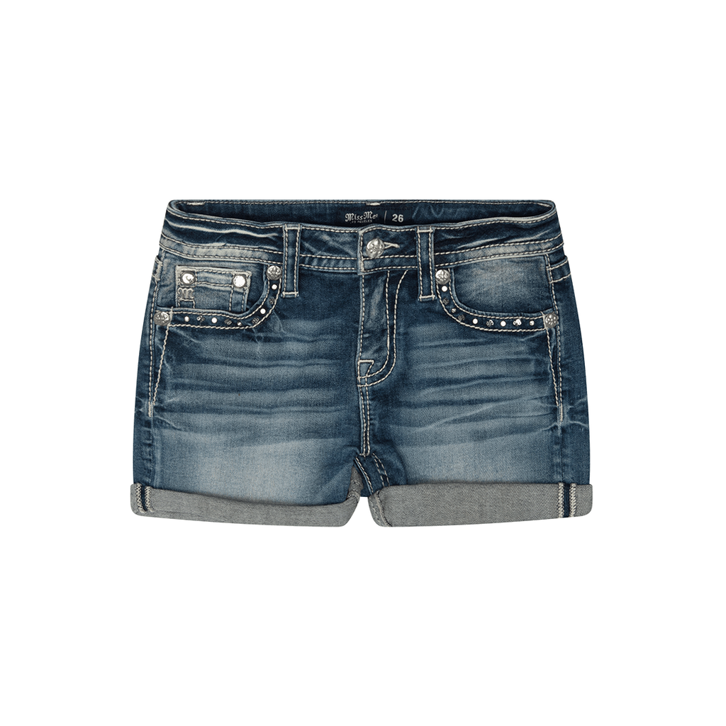 Rock Revival Shorts feature front zip/button closure, four pockets, and embellished detail design on pockets.