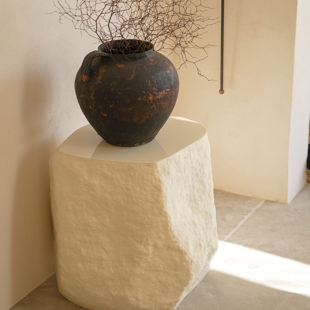 Each piece in the Rock Collection is a unique masterpiece, ensuring no two are alike. Perfect as a stylish side table in your living room or a standout plinth in retail spaces, this collection makes a bold statement in any setting.