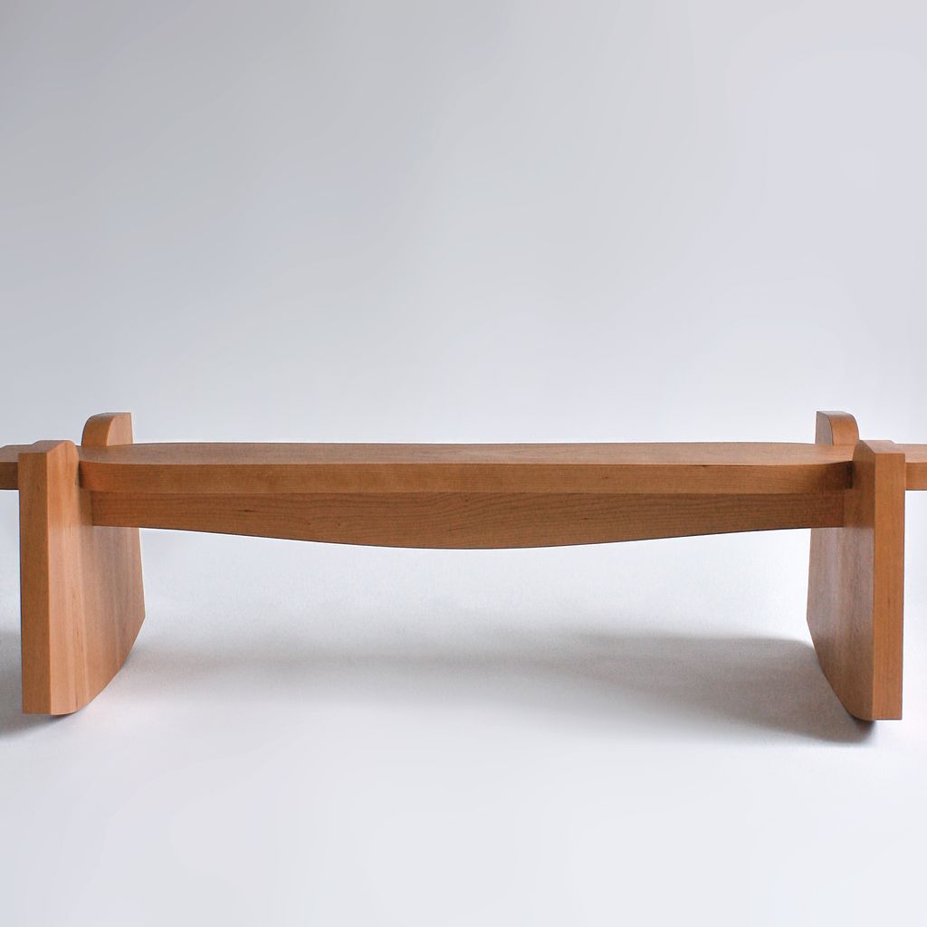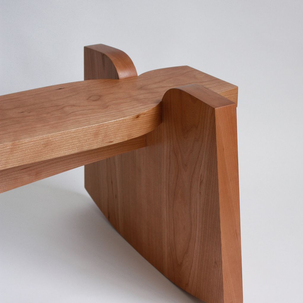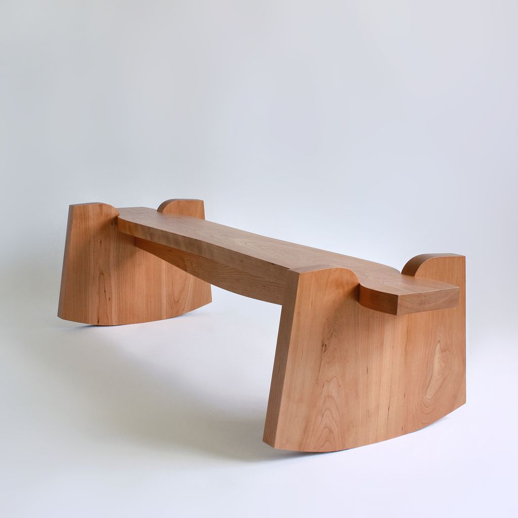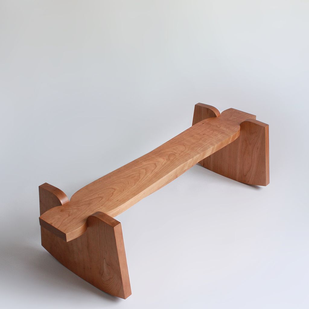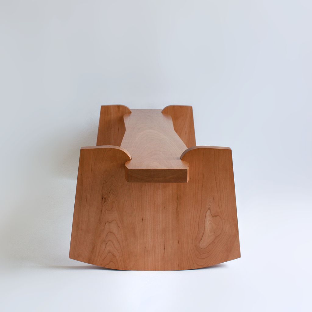 Rocking Bench from 'Between a Rock and Hard Place' series, 2022. Crafted from solid cherry wood.