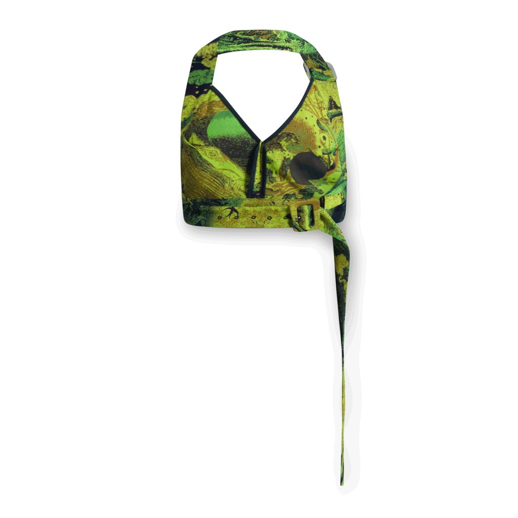 This cropped halter neck top from Rodebjer is crafted from luxurious Italian jacquard, made from 100% recycled polyester, and features adjustable straps at the neck and around the waist. New with tags.