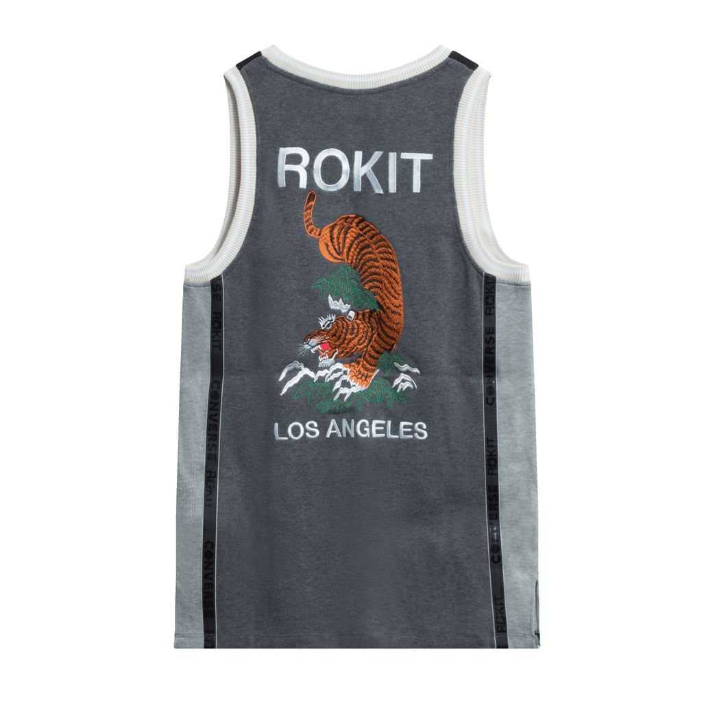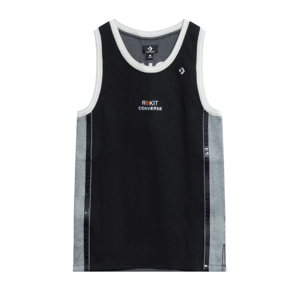 Brand new with tags. Men's jersey from exclusive ROKIT x Converse collaboration, the pieces remix Converse classics in tribute to LA’s divergent approaches to streetwear culture. Features ROKIT Los Angeles tiger graphic embroidery across back and logo tape detailing. 97% cotton.