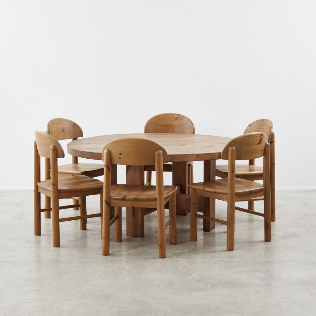 Roland Wilhelmsson Ågesta dining table / Rainer Daumiller Solid Pine Dining Chairs Karl Andersson & Söner, Sweden, 1970s / Hirtshals Savvaerk, Denmark, 1970s