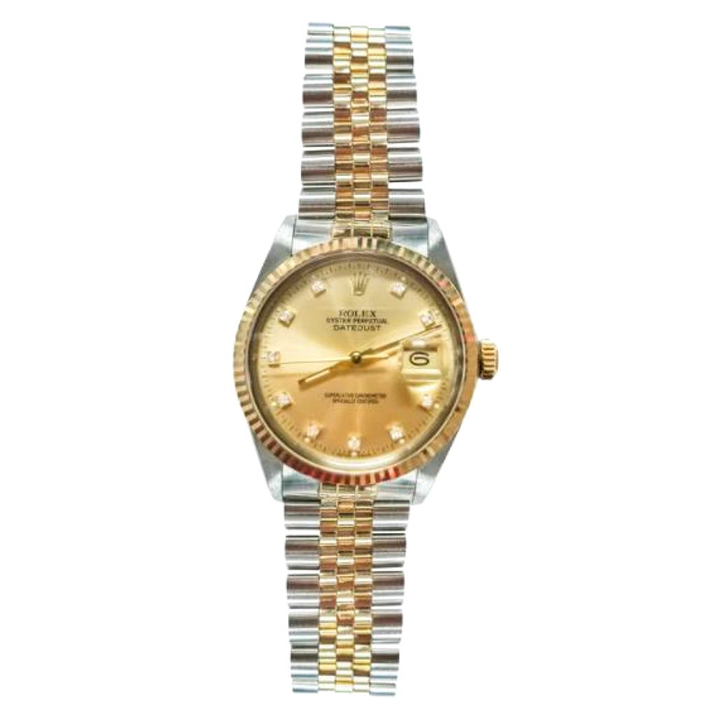 18kt yellow gold and stainless, features yellow gold bezel, jubilee bracelet, champagne face, factory diamond dial