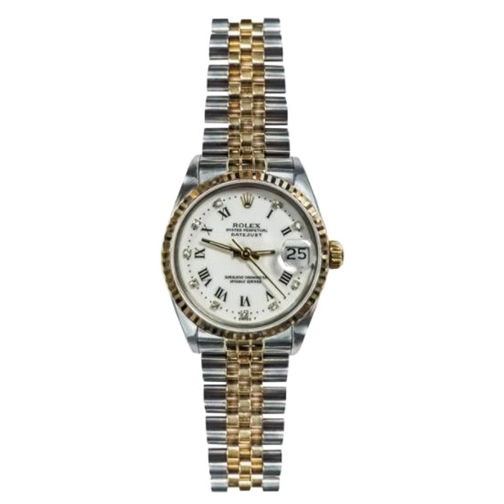 18kt yellow and stainless, features yellow gold fluted bezel, jubilee bracelet, factory white diamond dial w/ roman numerals