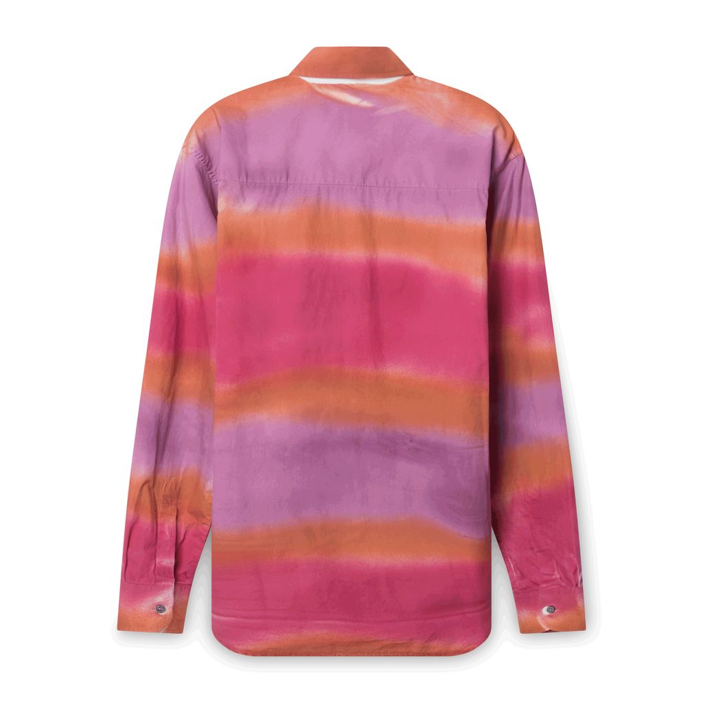 Romeo Gigli is usually known for clean Italian minimalism and this spray painted button up shirt deviates from that quite a bit. Cotton poplin shirt but the paint makes it a bit stiffer.