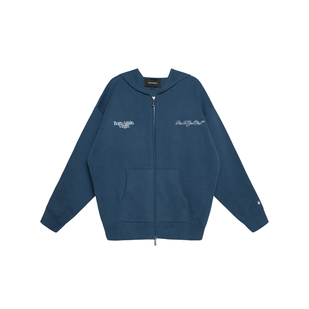 Rose in Good Faith Knit Zip Hoodie features 2-way forged metal zipper, embroidered logo at chest, and 2 pockets on front.