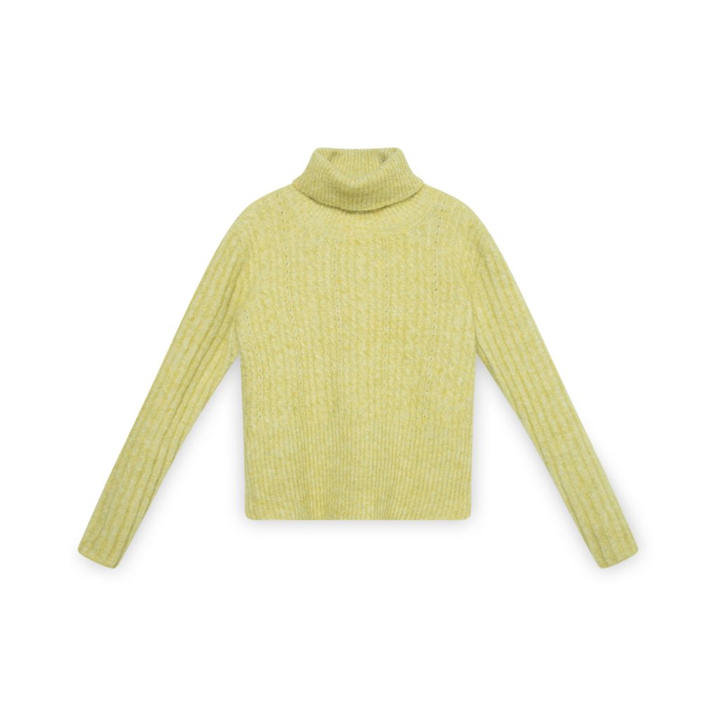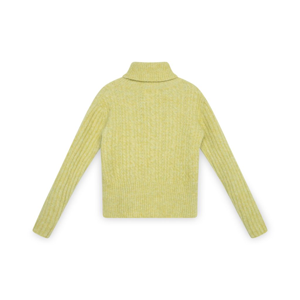 Rouje Green Knit Turtleneck Sweater features cable knit design and turtleneck.