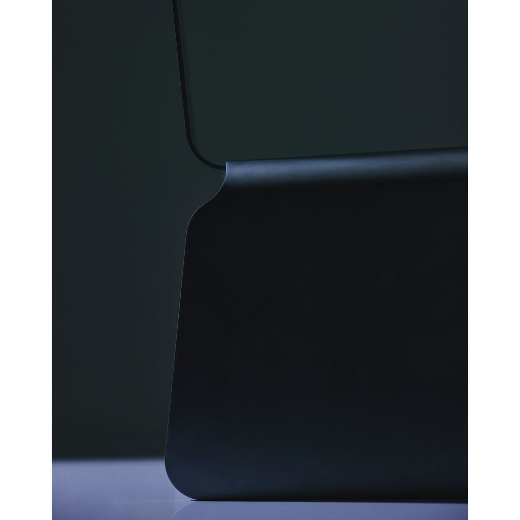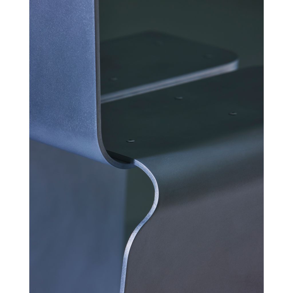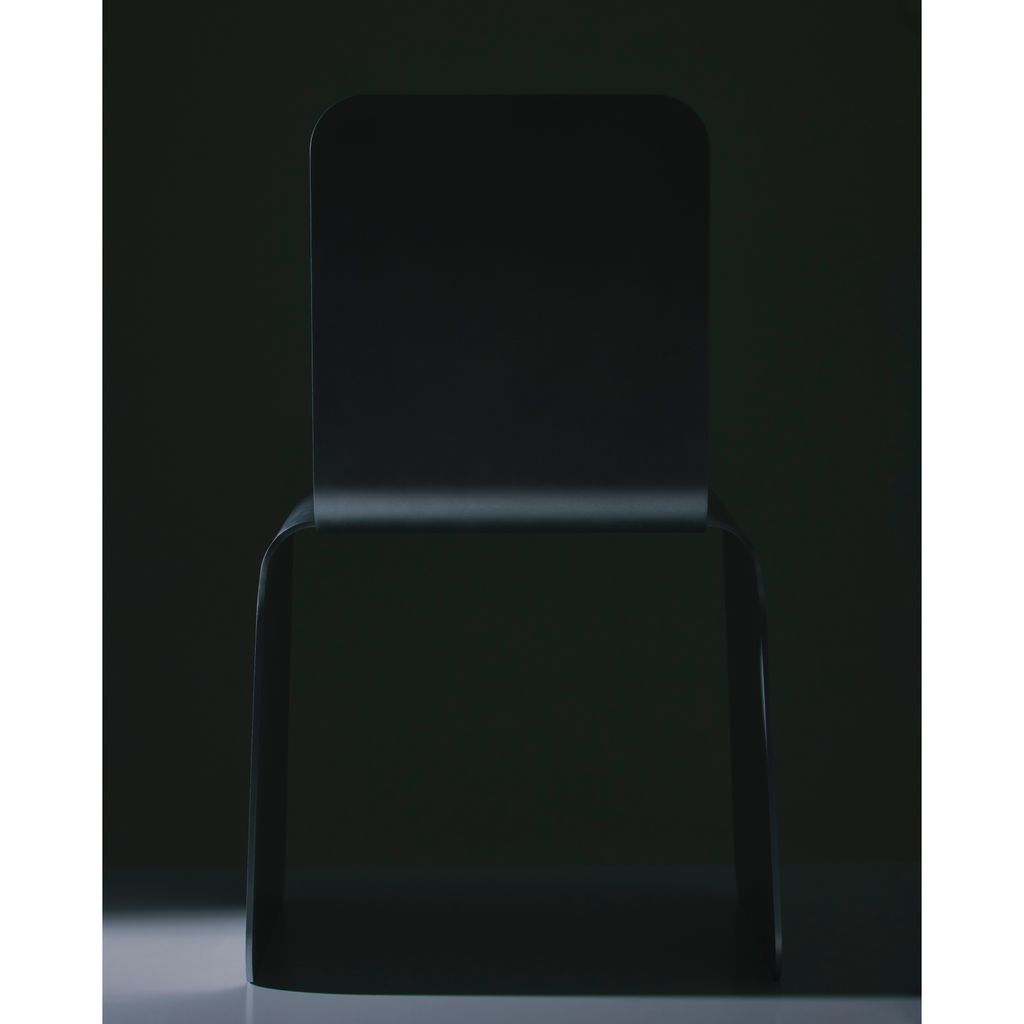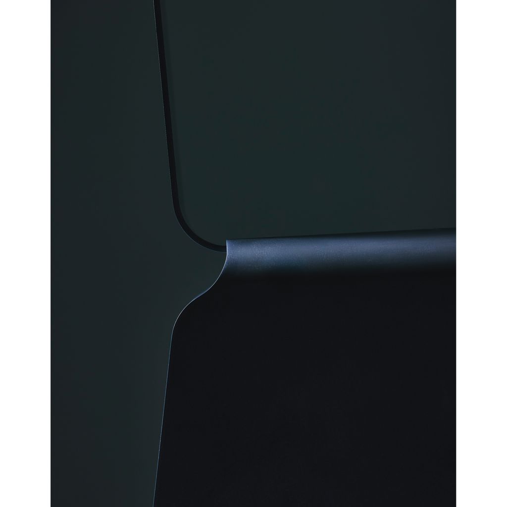 The Rounded Edges Chair advances the collection’s essential simplicity. Three folded aluminum plates are joined together by rivets at the seat to form the chair’s sleek silhouette. Composed of quarter inch thick sheets, the chair is available in two distinct colours; clearbrushed aluminum and pale green.