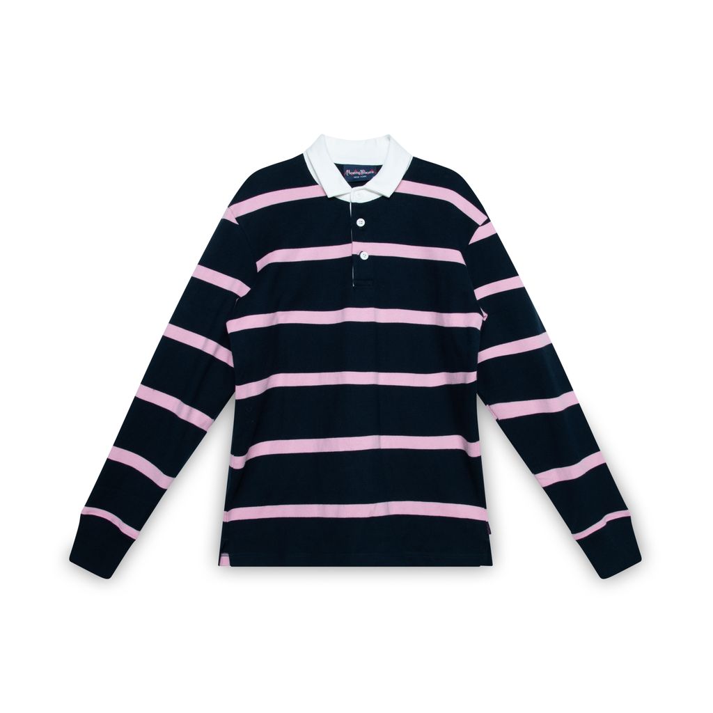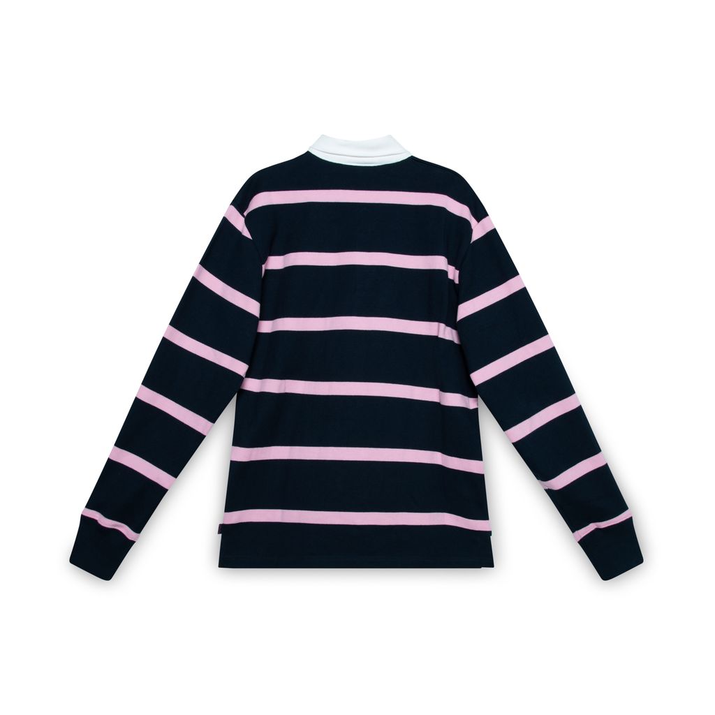 Rowing Blazers Hockney stripe #2 rugby features buttons at chest, and rib cuffs.