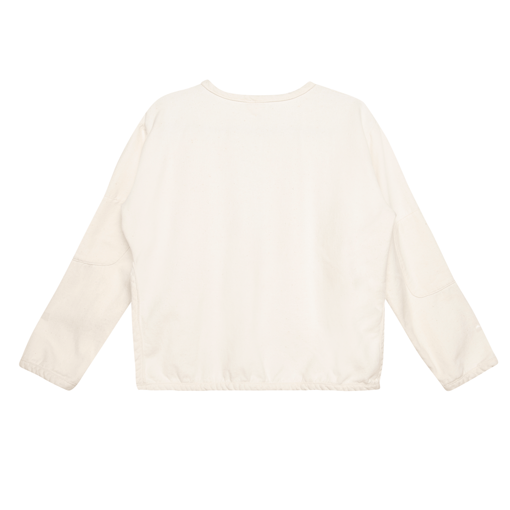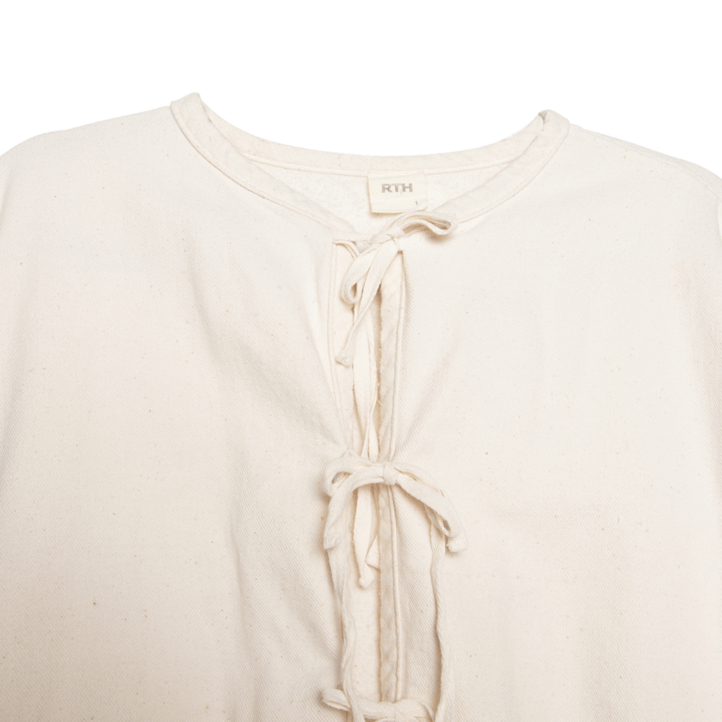 Tie front, elbow patches, patch pockets, beige