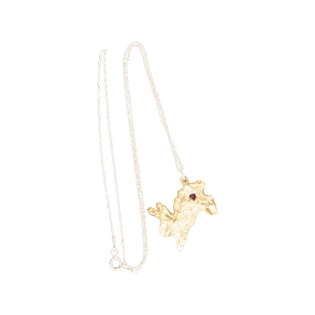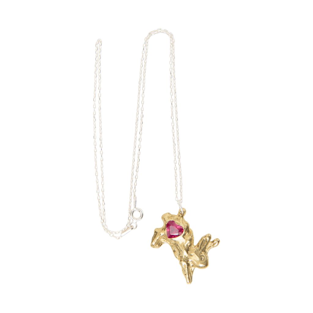 Handmade, brass solid bunny with ruby gemstone + 16.5 inch silver chain.
