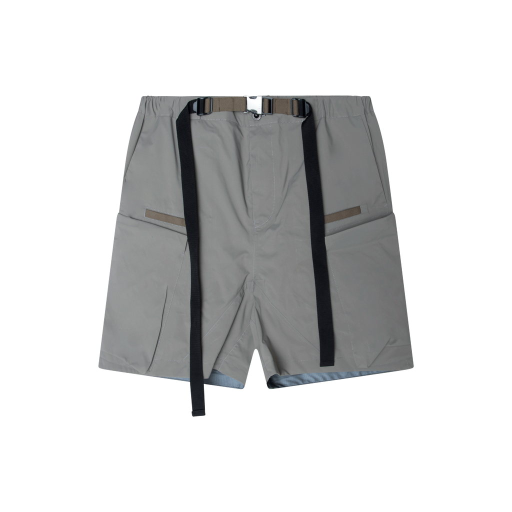 Sacai x Acronym Shorts in Khaki features adjustable integrated belt, zip fly, and 8 pocket styling.