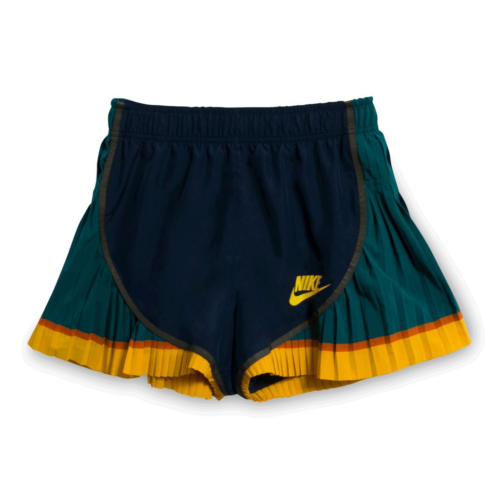 Part of the Nike x Sacai collaboration, designer Chitose Abe brings her vision to an athletic wear icon. The Nike x Sacai Tempo Shorts celebrate movement with pleated insets at the hem, adjustable waistband with Nike logo interior drawstring, and Nike logo at the left leg. Interior pocket for on-the-go storage. Pre-owned. In excellent condition.