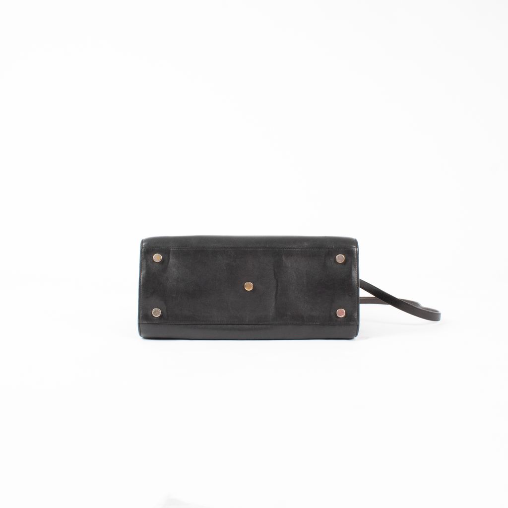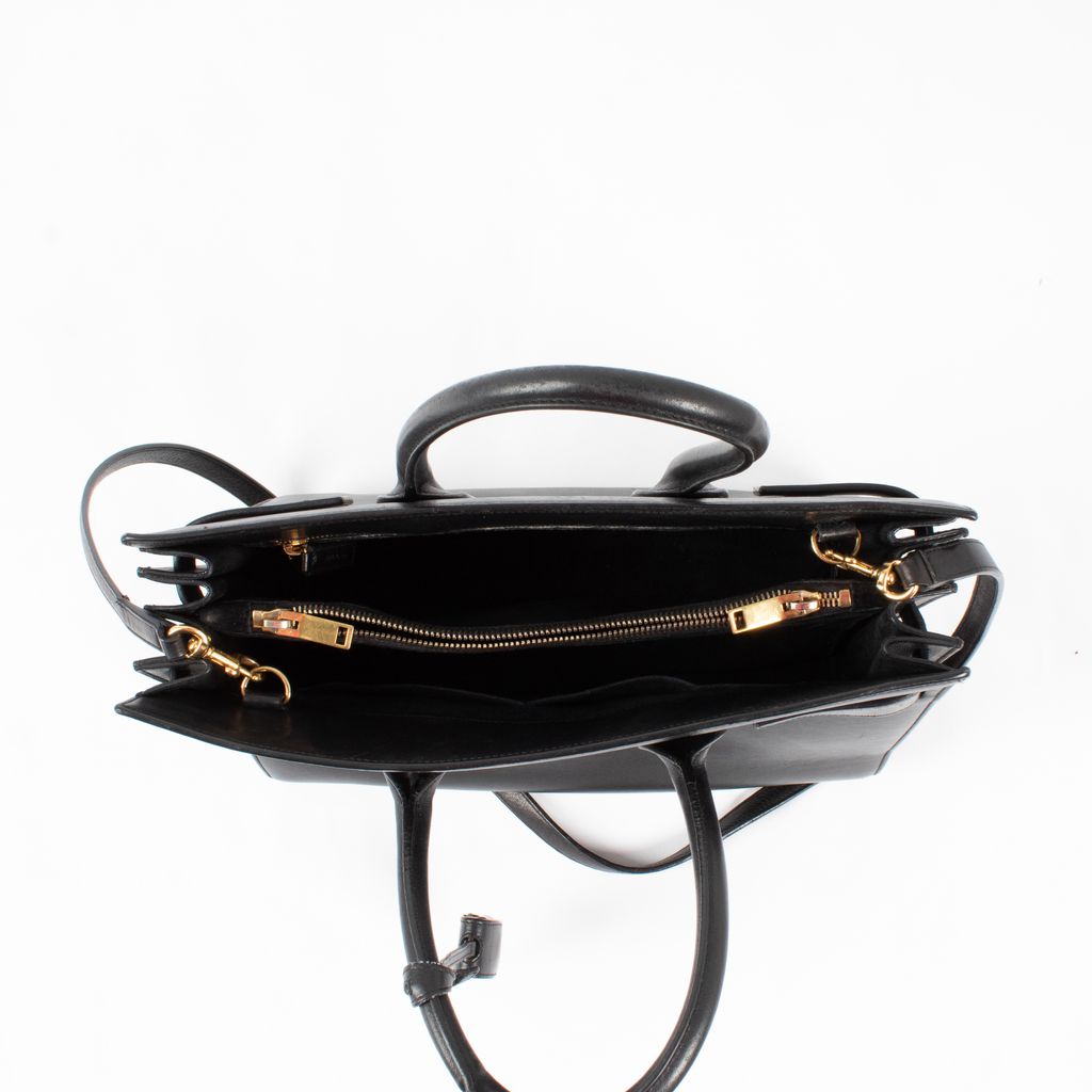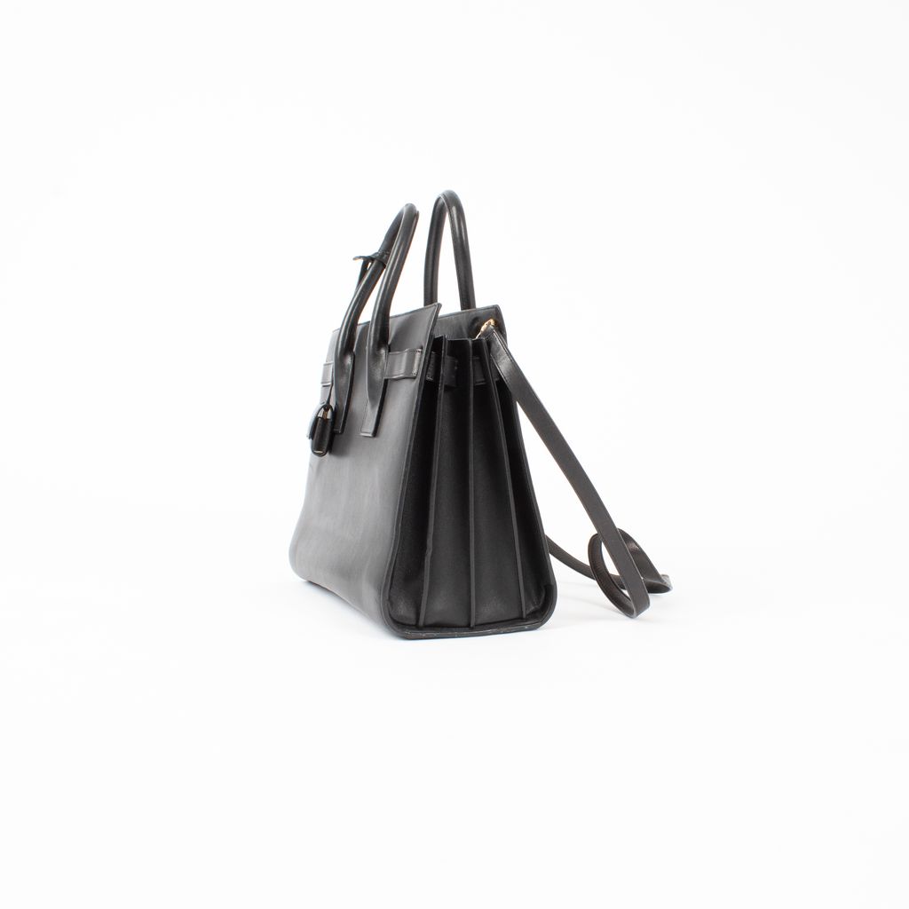 One of the most recognizable designs from the Saint Laurent line of handbags, the Sac du Jour is a fantastic everyday bag that looks sleek and feels chic. Features leather fabrication, accordion pleated sides, removable shoulder/crossbody strap, standing pegs on bottom, gold embossed Saint Laurent logo on front, and hangtag on handle.