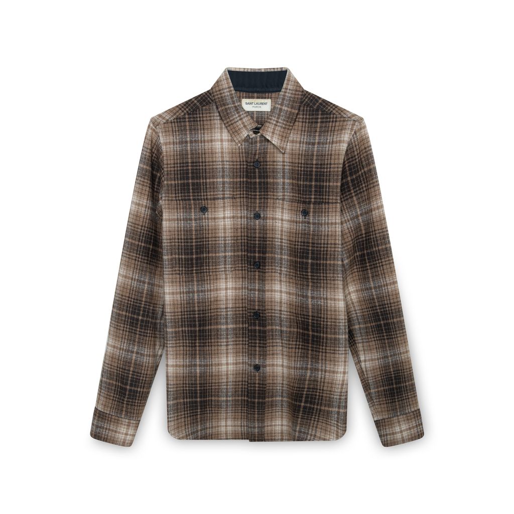 Saint Laurent Wool Plaid Button Down feature two front pockets with button closure, and front button closure