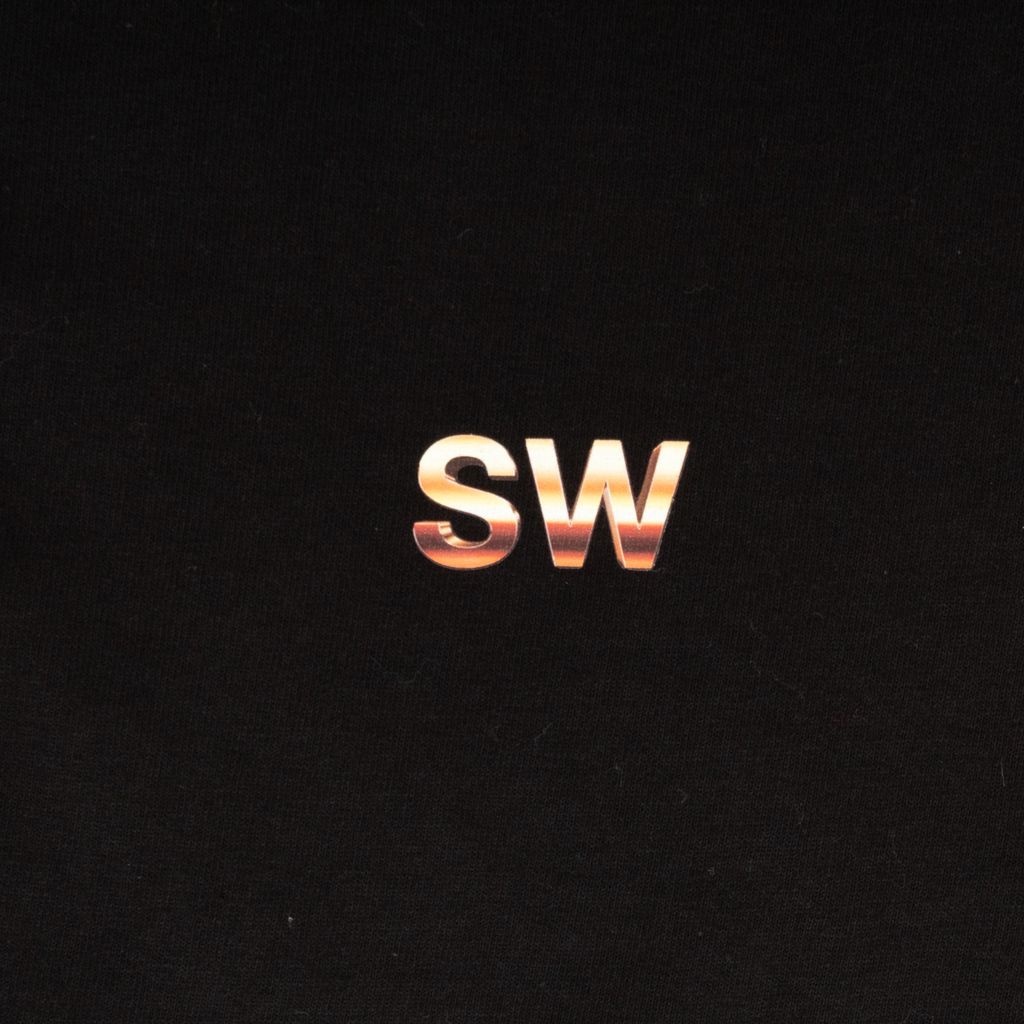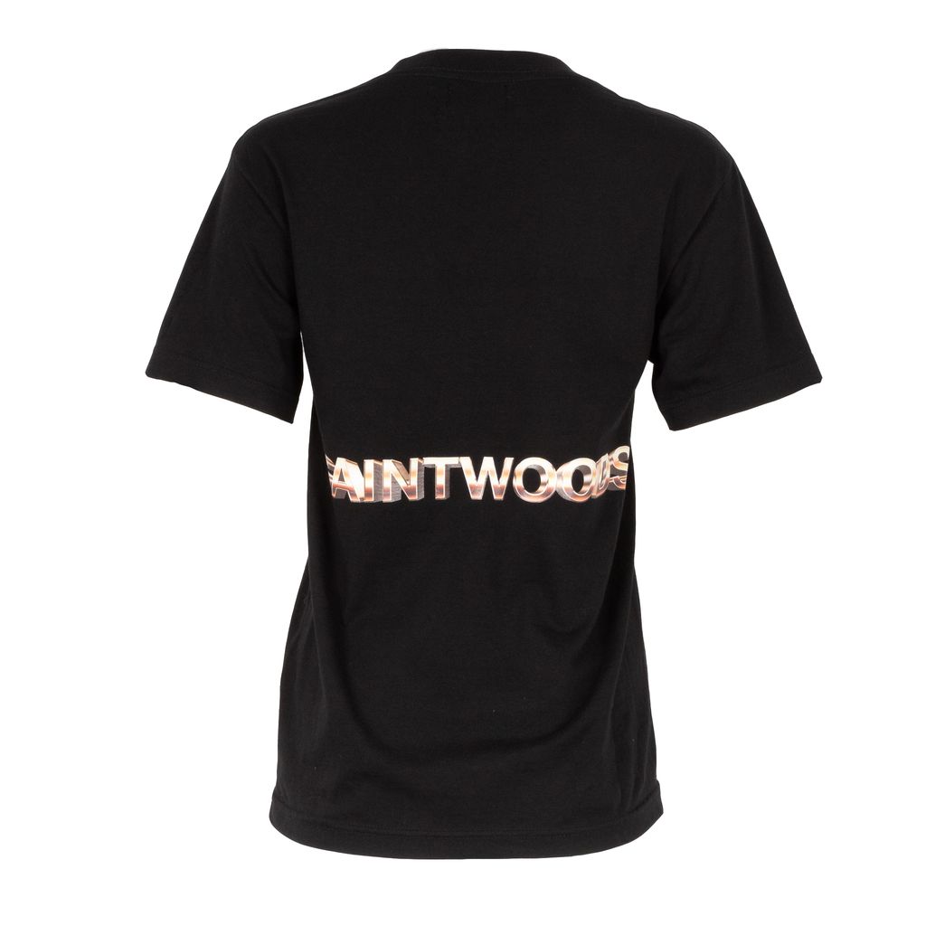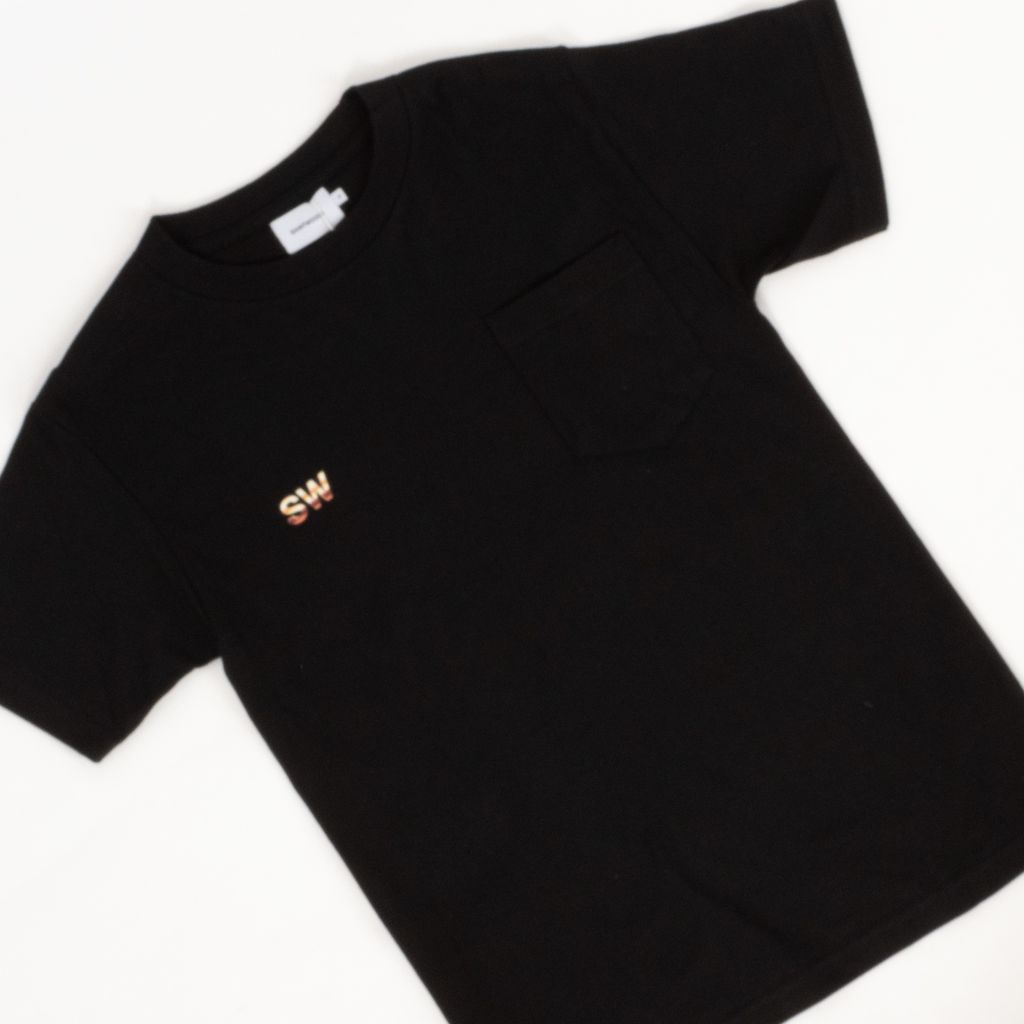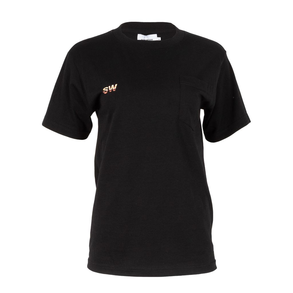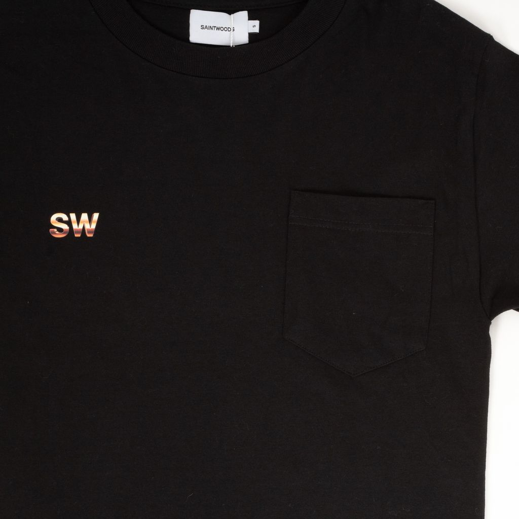 Basic tee design is combined with stylized branding in this t-shirt from Saintwoods. SW logo graphic and chest pocket provide balance, while the back logo graphic is centered and blown up for dramatic effect.