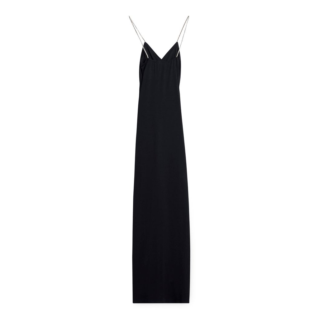 Stunning small black dress with diamond studded spaghetti strapÂ