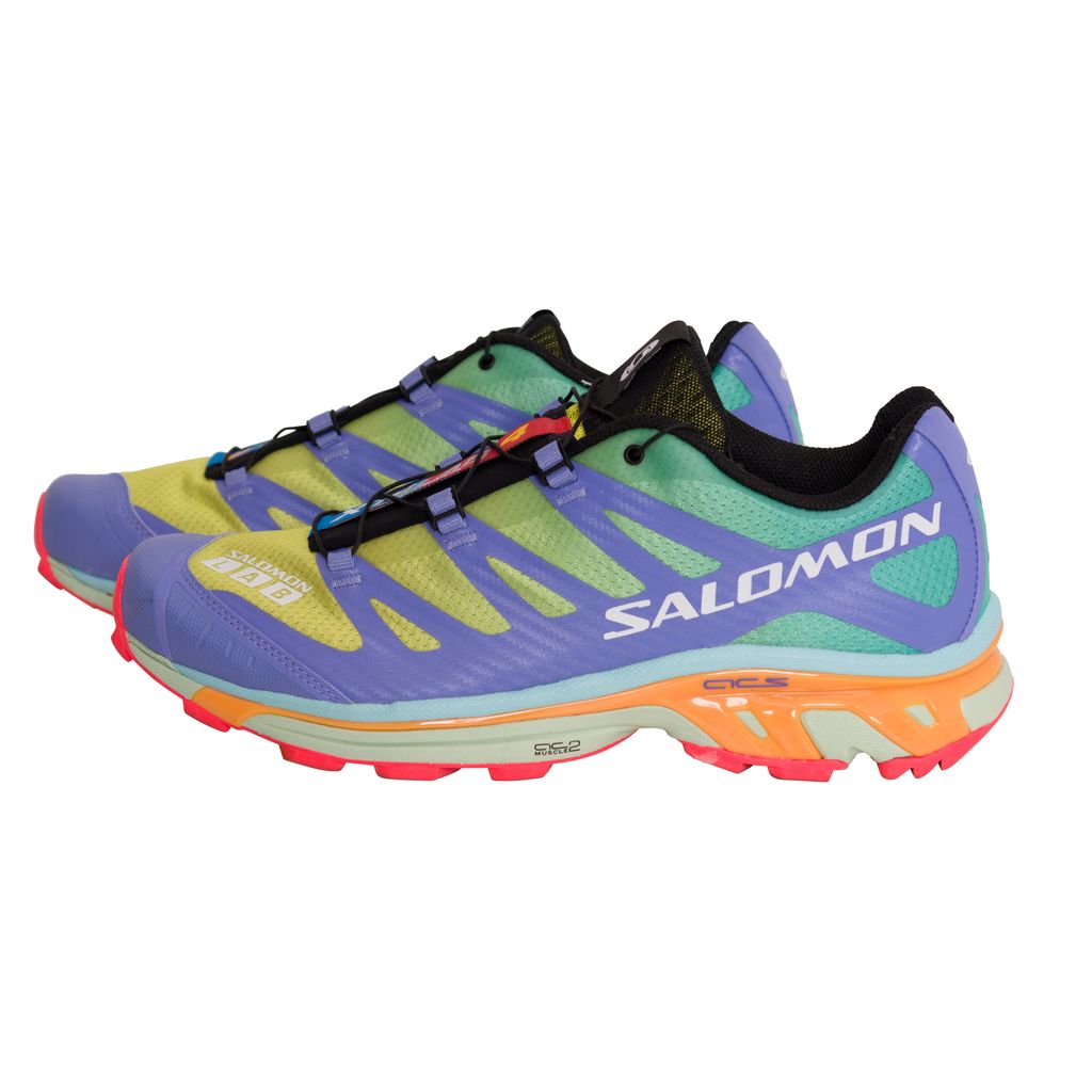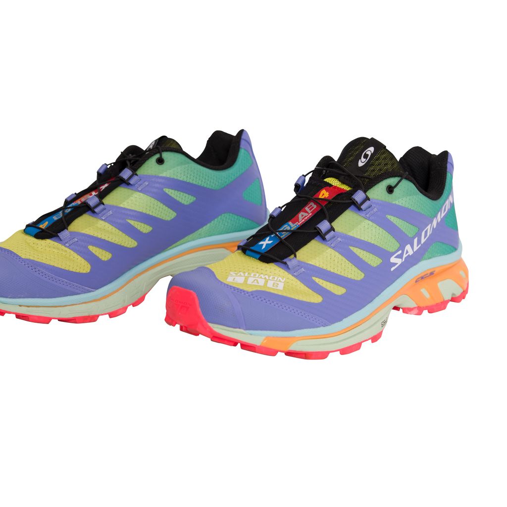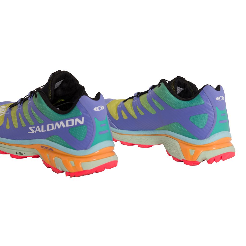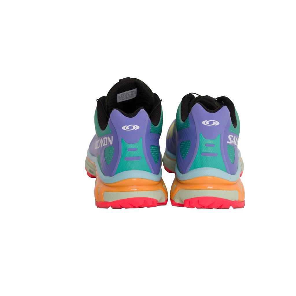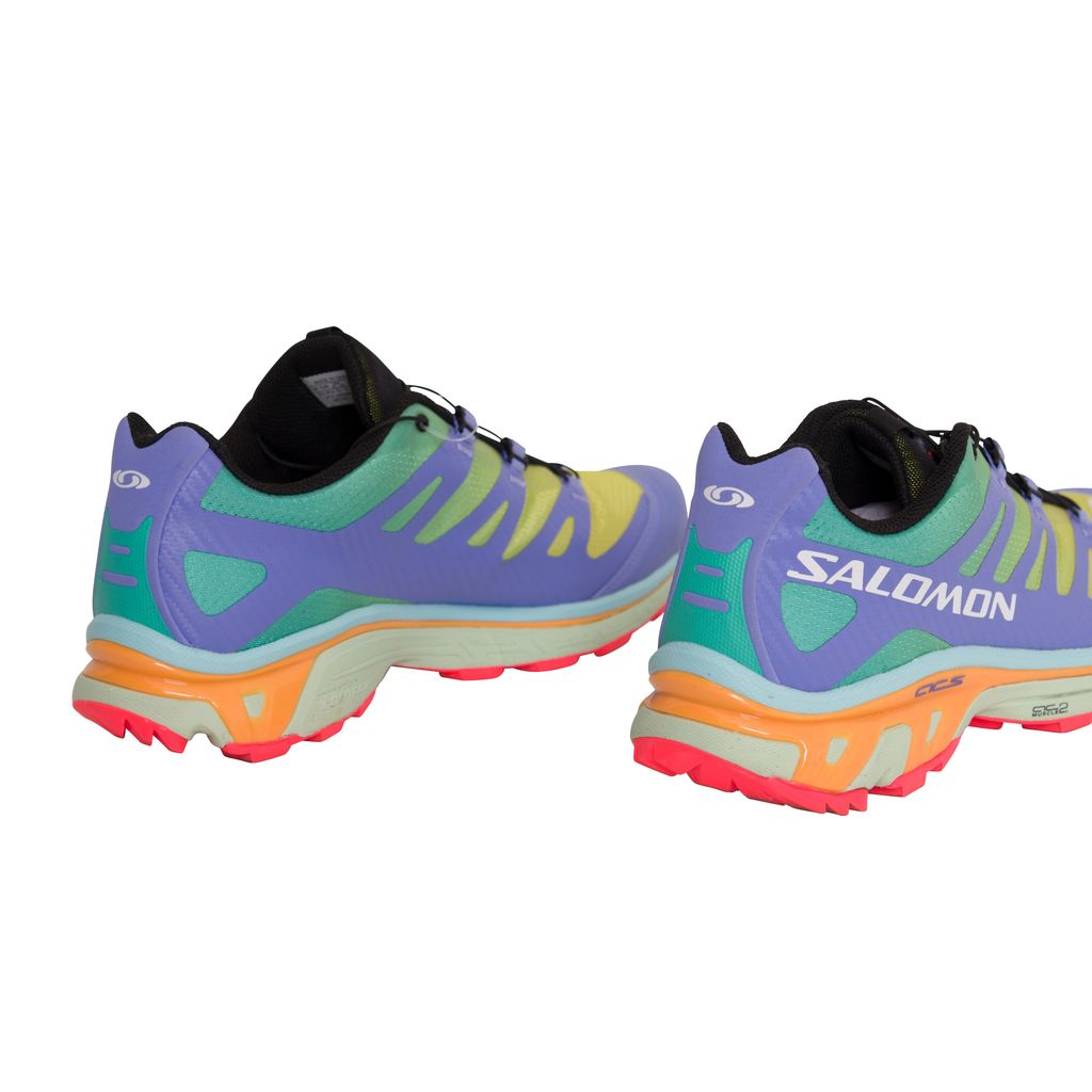 Salomon XT-4 'Evening Primrose/Mint Leaf/Lolite' features intarsia knit, logo print on side, logo patch at the tongue, almond toe, front lace-up, branded insole, and chunky rubber sole.