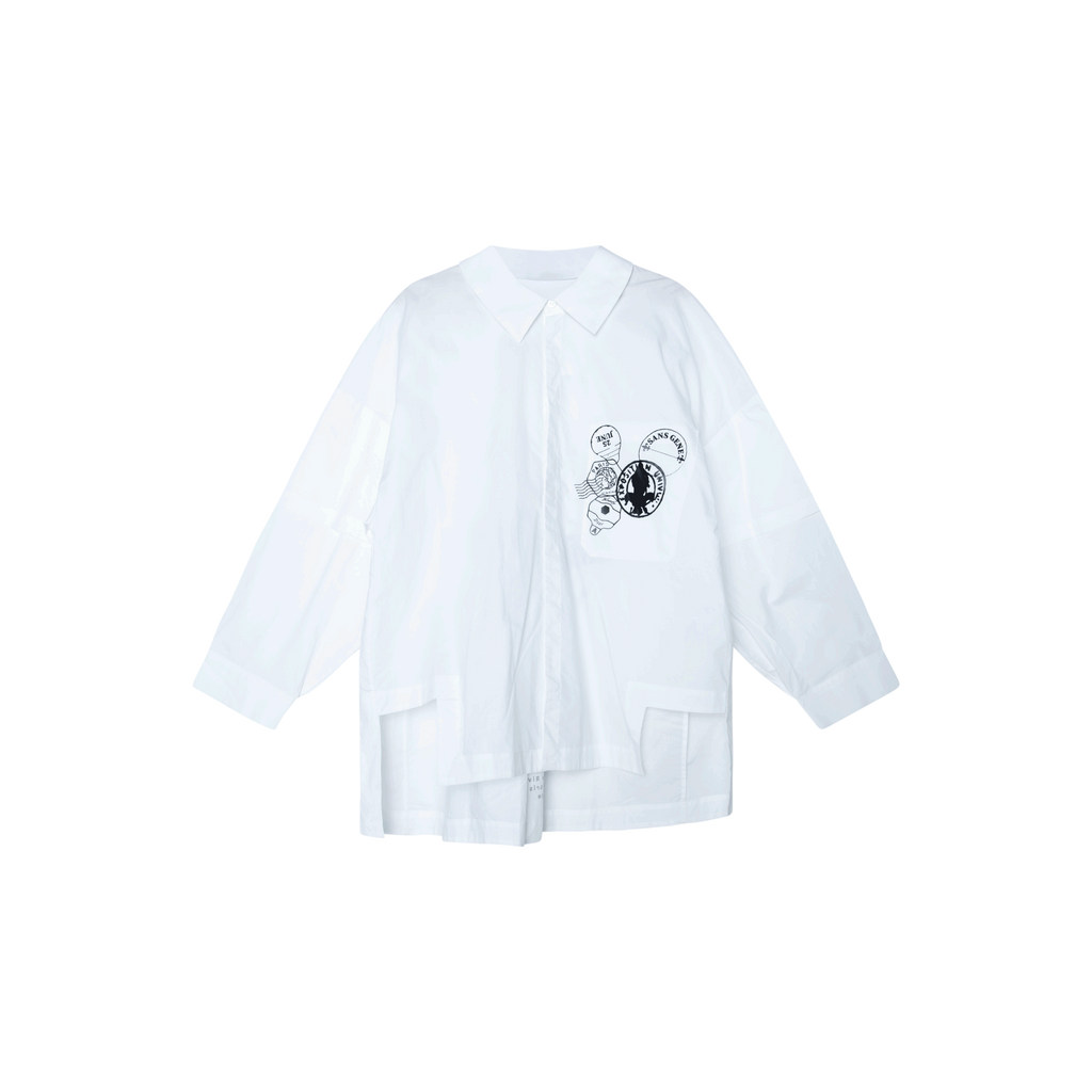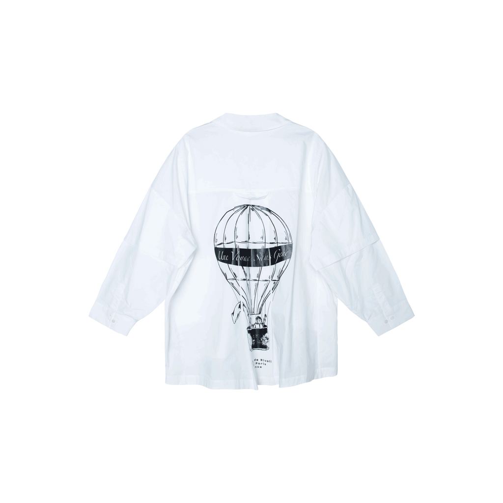 Sans Gêne x BD Layered Sleeve Shirt in White features poplin style, square cut out at side hips, layered sleeves, Mother of Pearl buttons.