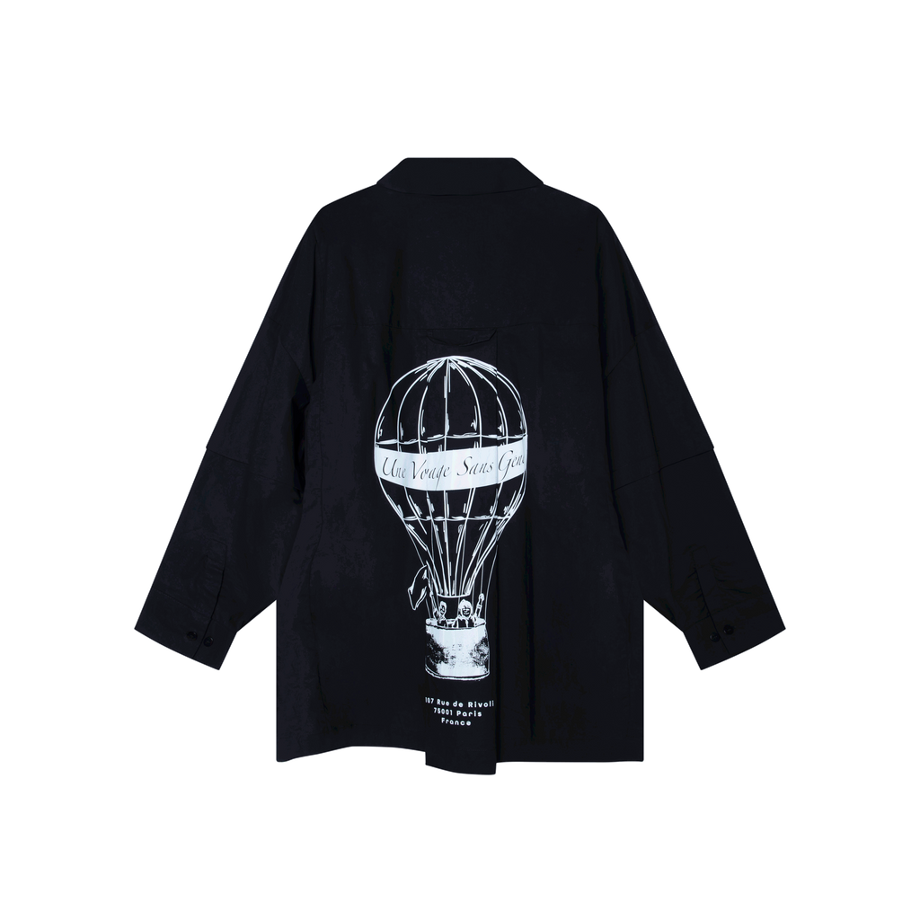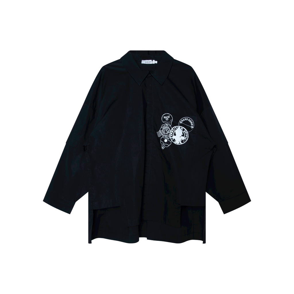 Sans Gêne x Bloody Dior Layered Sleeve Shirt in Black features poplin style button down with square cut out at side hip, layered sleeves, and Mother of Pearl buttons.